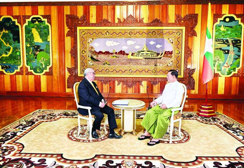 နိုင်ငံတော်စီမံအုပ်ချုပ်ရေးကောင်စီဥက္ကဋ္ဌ နိုင်ငံတော်ဝန်ကြီးချုပ် ဗိုလ်ချုပ်မှူးကြီး မင်းအောင်လှိုင်သည် တာဝန်ပြီးဆုံး၍ ပြန်လည်ထွက်ခွာမည့် မြန်မာနိုင်ငံဆိုင်ရာ သီရိလင်္ကာနိုင်ငံသံအမတ်ကြီး H.E. Mr. J.M.J.P. Bandara အား ယနေ့နံနက်ပိုင်းတွင် နေပြည်တော်ရှိ နိုင်ငံတော်စီမံအုပ်ချုပ်ရေးကောင်စီဥက္ကဋ္ဌရုံး ဧည့်ခန်းမ၌ လက်ခံတွေ့ဆုံသည်။
