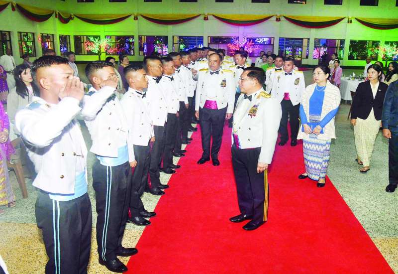 စစ်တက္ကသိုလ် ဗိုလ်လောင်းသင်တန်းအမှတ်စဉ် (၆၇) သင်တန်းဆင်းဂုဏ်ပြုညစာစားပွဲအခမ်းအနားကို ယနေ့ညနေပိုင်းတွင် ပြင်ဦးလွင်မြို့၊ စစ်တက္ကသိုလ်၊ အနော်ရထာတပ်ရင်း ဗိုလ်လောင်းစားရိပ်သာ၌ ကျင်းပပြုလုပ်ရာ နိုင်ငံတော်လုံခြုံရေးနှင့်အေးချမ်းသာယာရေးကော်မရှင်ဥက္ကဋ္ဌ တပ်မတော်ကာကွယ်ရေးဦးစီးချုပ် ဗိုလ်ချုပ်မှူးကြီး မင်းအောင်လှိုင် တက်ရောက်ချီးမြှင့်သည်။