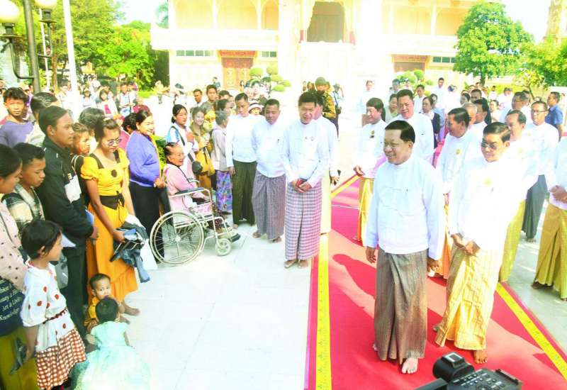 ပြည်ထောင်စုသမ္မတမြန်မာနိုင်ငံတော် ယာယီသမ္မတ နိုင်ငံတော်လုံခြုံရေးနှင့် အေးချမ်းသာယာရေးကော်မရှင်ဥက္ကဋ္ဌ ဗိုလ်ချုပ်မှူးကြီး မင်းအောင်လှိုင်သည် ဇနီး ဒေါ်ကြူကြူလှ၊ ကော်မရှင်အတွင်းရေးမှူး တွဲဖက်အမှုဆောင်ချုပ် ဗိုလ်ချုပ်ကြီး ရဲဝင်းဦးနှင့် ဇနီး၊ ခရီးစဉ်တွင်လိုက်ပါလာသည့် အဖွဲ့ဝင်များ၊ မန္တလေးတိုင်းဒေသကြီးဝန်ကြီးချုပ်၊ ကာကွယ်ရေးဦးစီးချုပ်ရုံးမှ အဆင့်မြင့်တပ်မတော်အရာရှိကြီးများ၊ အလယ်ပိုင်းတိုင်းစစ်ဌာနချုပ် တိုင်းမှူးနှင့် အဖွဲ့ဝင်များလိုက်ပါ၍ ယနေ့နံနက်ပိုင်းတွင် မန္တလေးမြို့ မဟာမုနိဘုရားကြီးသို့ သွားရောက်ဖူးမြော်ကြည်ညိုပြီး ငလျင်ဒဏ်ကြောင့် ထိခိုက်ပျက်စီးခဲ့ရသည့် သာသနိကအဆောက်အဦများအား ရှေးမူမပျက် ပြန်လည်တည်ဆောက်ပြုပြင်မွမ်းမံနေမှု အခြေအနေများကို ကြည့်ရှုစစ်ဆေးသည်။