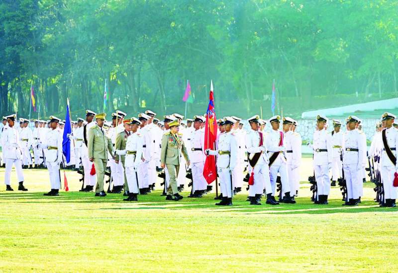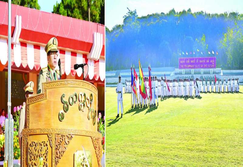 စစ်တက္ကသိုလ် ဗိုလ်လောင်းသင်တန်းအမှတ်စဉ် (၆၇) သင်တန်းဆင်းဂုဏ်ပြုစစ်ရေးပြအခမ်းအနားကို ယနေ့နံနက်ပိုင်းတွင် ပြင်ဦးလွင်မြို့၊ စစ်တက္ကသိုလ် စစ်ရေးပြကွင်း၌ ကျင်းပပြုလုပ်ရာ နိုင်ငံတော်လုံခြုံရေးနှင့်အေးချမ်းသာယာရေးကော်မရှင်ဥက္ကဋ္ဌ တပ်မတော်ကာကွယ်ရေးဦးစီးချုပ် ဗိုလ်ချုပ်မှူးကြီး သတိုးမဟာသရေစည်သူ သတိုးသီရိသုဓမ္မ မင်းအောင်လှိုင် တက်ရောက်မိန့်ခွန်းပြောကြားသည်။