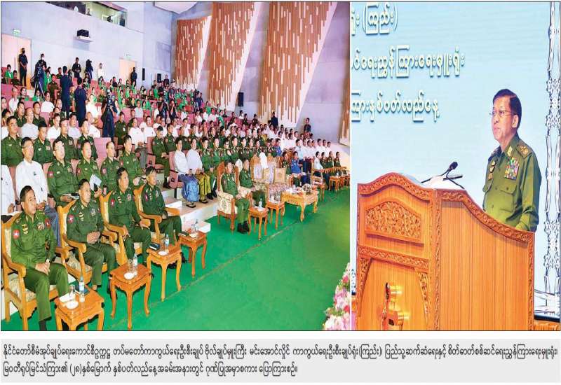 နိုင်ငံတော်စီမံအုပ်ချုပ်ရေးကောင်စီဥက္ကဋ္ဌ တပ်မတော်ကာကွယ်ရေးဦးစီးချုပ် ဗိုလ်ချုပ်မှူးကြီး သတိုးမဟာသရေစည်သူ သတိုးသီရိသုဓမ္မ မင်းအောင်လှိုင် တက်ရောက်မိန့်ခွန်းပြောကြား