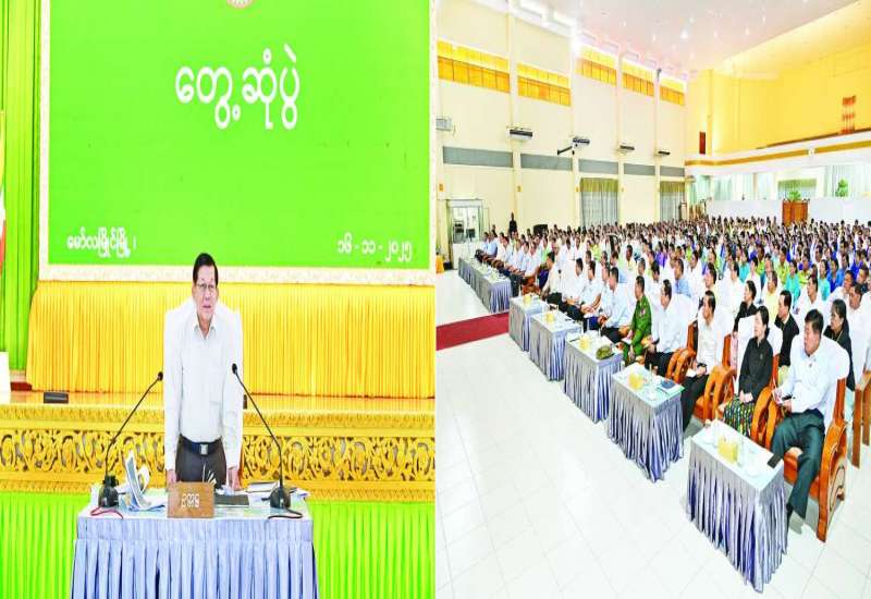 ပြည်ထောင်စုသမ္မတမြန်မာနိုင်ငံတော်ယာယီသမ္မတ နိုင်ငံတော်လုံခြုံရေးနှင့်အေးချမ်းသာယာရေးကော်မရှင်ဥက္ကဋ္ဌ ဗိုလ်ချုပ်မှူးကြီး မင်းအောင်လှိုင်သည် ကရင်ပြည်နယ်၊ ဘားအံမြို့ရှိ ပြည်နယ်အဆင့် ဌာနဆိုင်ရာတာဝန်ရှိသူများနှင့် ရပ်မိရပ်ဖများအား ယနေ့နံနက်ပိုင်းတွင် တွေ့ဆုံ၍ ဒေသဖွံ့ဖြိုးတိုးတက်ရေးဆိုင်ရာများအား ဆွေးနွေးပြောကြားသည်။