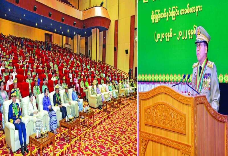 နိုင်ငံတော်စီမံအုပ်ချုပ်ရေးကောင်စီဥက္ကဋ္ဌ နိုင်ငံတော်ဝန်ကြီးချုပ် ဗိုလ်ချုပ်မှူးကြီး မင်းအောင်လှိုင်သည် ယနေ့နံနက်ပိုင်းတွင် နေပြည်တော်ရှိ နိုင်ငံတော်စီမံအုပ်ချုပ်ရေးကောင်စီဥက္ကဋ္ဌရုံး အစည်းအဝေးခန်းမ၌ ပြည်ထောင်စုဝန်ကြီးများ၊ နေပြည်တော်ကောင်စီဥက္ကဋ္ဌ၊ တိုင်းဒေသကြီးနှင့် ပြည်နယ်ဝန်ကြီးချုပ်များ၊ ကိုယ်ပိုင်အုပ်ချုပ်ခွင့်ရဒေသနှင့် တိုင်းဥက္ကဋ္ဌများအား တွေ့ဆုံလမ်းညွှန် အမှာစကားပြောကြားသည်။