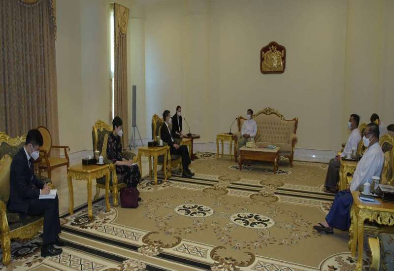 နိုင်ငံတော်စီမံအုပ်ချုပ်ရေးကောင်စီဥက္ကဋ္ဌ၊ နိုင်ငံတော်ဝန်ကြီးချုပ် ဗိုလ်ချုပ်မှူးကြီး မင်းအောင်လှိုင်သည် မြန်မာနိုင်ငံ အမျိုးသား ပြန်လည်သင့်မြတ်ရေးဆိုင်ရာ ဂျပန်အစိုးရ၏ အထူးကိုယ်စားလှယ်နှင့် နီပွန်ဖောင်ဒေးရှင်းဥက္ကဋ္ဌ H.E.Mr.Yohei SASAKAWA အား ယနေ့မွန်းလွဲပိုင်းတွင် နေပြည်တော်ရှိ တပ်မတော်ဧည့်ရိပ်သာ၌ လက်ခံတွေ့ဆုံသည်။
