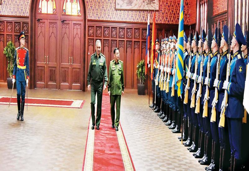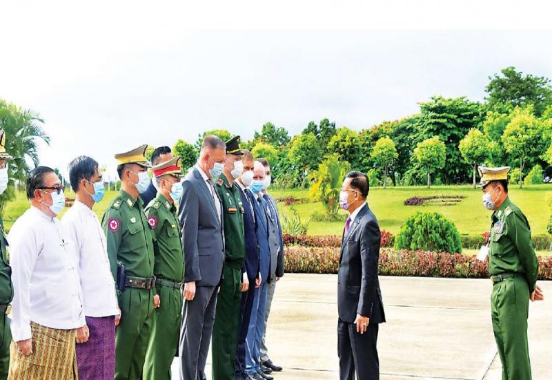 (၉) ကြိမ်မြောက်နိုင်ငံတကာလုံခြုံရေးဆိုင်ရာညီလာခံ (Moscow Conference on International Security-2021(MCIS-2021)) သို့ တက်ရောက်ရန်အတွက် ရုရှားဖက်ဒရေးရှင်းနိုင်ငံ၌ ရောက်ရှိနေ သည့် နိုင်ငံတော်စီမံအုပ်ချုပ်ရေးကောင်စီဥက္ကဋ္ဌ၊ တပ်မတော်ကာကွယ်ရေးဦးစီးချုပ် ဗိုလ်ချုပ်မှူးကြီး မင်းအောင်လှိုင် အား ရုရှားဖက်ဒ ရေးရှင်းနိုင်ငံ၊ ကာကွယ်ရေးဝန်ကြီး Army General Sergey Kuzhugetovich Shoigu က ဇွန် ၂၂ ရက် ညနေပိုင်းတွင် ဂုဏ်ပြုတပ်ဖွဲ့ဖြင့် ကြိုဆိုသည်။