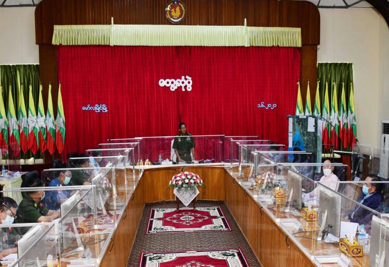 နိုင်ငံတော်စီမံအုပ်ချုပ်ရေးကောင်စီ အစည်းအဝေး (၁၂/၂၀၂၁)ကို ယနေ့နံနက်ပိုင်းတွင် နေပြည်တော်ရှိ နိုင်ငံတော်စီမံအုပ်ချုပ်ရေးကောင်စီဥက္ကဋ္ဌရုံး အစည်းအဝေးခန်းမ၌ ကျင်းပရာ နိုင်ငံတော်စီမံအုပ်ချုပ်ရေး ကောင်စီဥက္ကဋ္ဌ၊ တပ်မတော်ကာကွယ်ရေးဦးစီးချုပ် ဗိုလ်ချုပ်မှူးကြီး မင်းအောင်လှိုင် တက်ရောက်အမှာစကား ပြောကြားသည်။