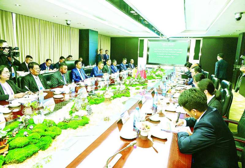 တရုတ်ပြည်သူ့သမ္မတနိုင်ငံသို့ အလုပ်သဘောခရီးရောက်ရှိနေသော ပြည်ထောင်စုသမ္မတမြန်မာနိုင်ငံတော် ယာယီသမ္မတ နိုင်ငံတော်လုံခြုံရေးနှင့်အေးချမ်းသာယာရေးကော်မရှင်ဥက္ကဋ္ဌ ဗိုလ်ချုပ်မှူးကြီးမင်းအောင်လှိုင်သည် လာအိုပြည်သူ့ဒီမိုကရက်တစ်သမ္မတနိုင်ငံ သမ္မတ H.E. Mr. Thongloun Sisoulith နှင့် ယနေ့ဒေသစံတော်ချိန် နေ့လယ် ၁၂ နာရီတွင် တီယန်ကျင်းမြို့ရှိ Renaissance Tianjin Lake ဟိုတယ်၌ တွေ့ဆုံဆွေးနွေးသည်။ ဦးစွာ ပြည်ထောင်စုသမ္မတမြန်မာနိုင်ငံတော် ယာယီသမ္မတ နိုင်ငံတော်လုံခြုံရေးနှင့် အေးချမ်းသာယာရေးကော်မရှင်ဥက္ကဋ္ဌအား လာအိုပြည်သူ့ဒီမိုကရက်တစ်သမ္မတနိုင်ငံ သမ္မတက ရင်းရင်းနှီးနှီးနှုတ်ဆက်ပြီး တွေ့ဆုံဆွေးနွေးသည်။