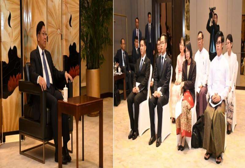 တရုတ်ပြည်သူ့သမ္မတနိုင်ငံသမ္မတ H.E. Mr. Xi Jinping ၏ ဖိတ်ကြားချက်အရ တရုတ်ပြည်သူ့သမ္မတနိုင်ငံသို့ အလုပ်သဘောခရီးရောက်ရှိနေသည့် ပြည်ထောင်စုသမ္မတမြန်မာနိုင်ငံတော် ယာယီသမ္မတ နိုင်ငံတော်လုံခြုံရေးနှင့်အေးချမ်းသာယာရေးကော်မရှင်ဥက္ကဋ္ဌ ဗိုလ်ချုပ်မှူးကြီး မင်းအောင်လှိုင်သည် ယနေ့ဒေသစံတော်ချိန် ညနေ ၅ နာရီတွင် တီယန်ကျင်းမြို့ရှိ တီယန်ကျင်းဧည့်ဂေဟာ၌ တရုတ်ပြည်သူ့သမ္မတနိုင်ငံသမ္မတနှင့် တွေ့ဆုံဆွေးနွေးသည်။