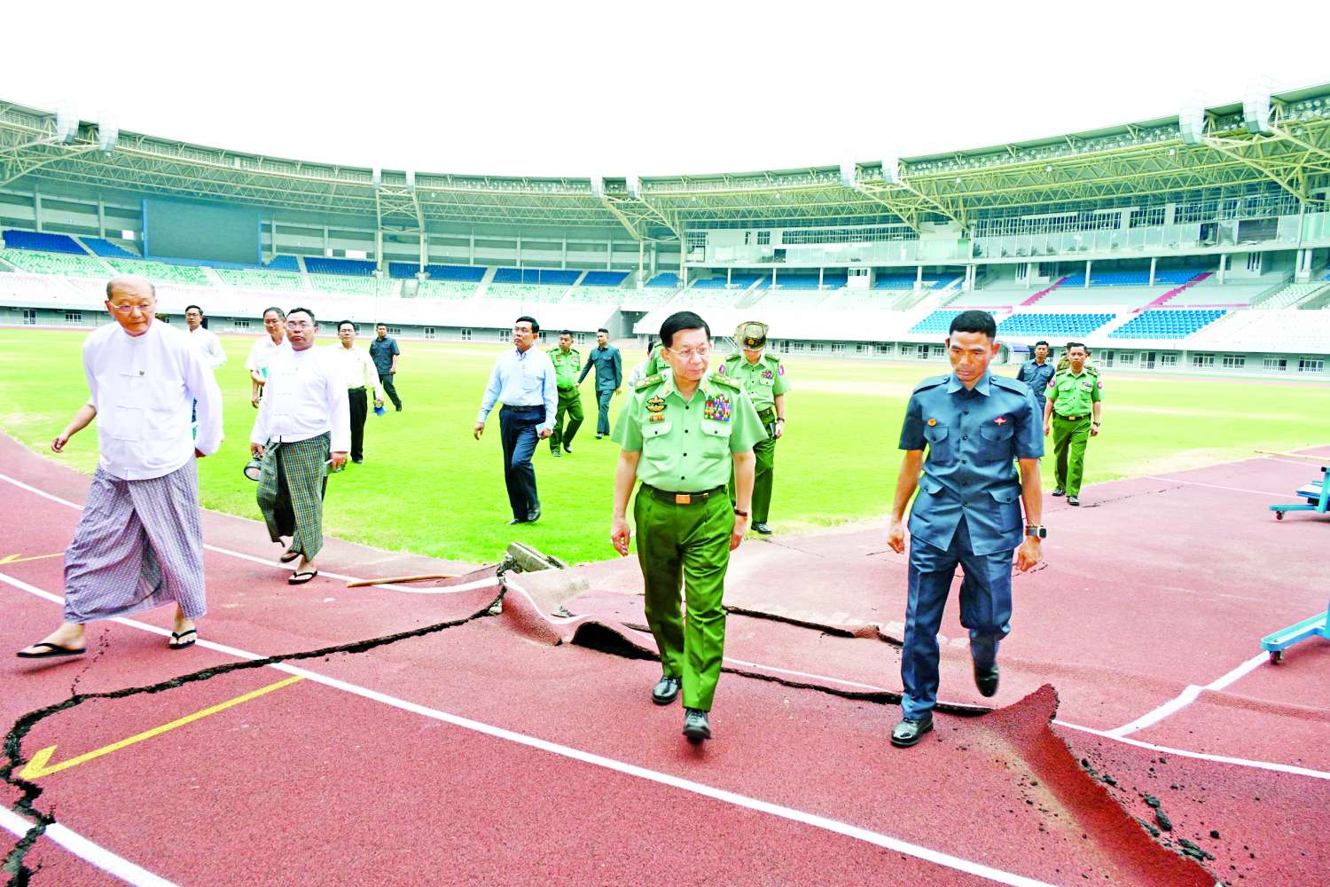 ရှင်းလင်းတင်ပြမှုများအပေါ် နိုင်ငံတော်စီမံအုပ်ချုပ်ရေးကောင်စီဥက္ကဋ္ဌ နိုင်ငံတော်ဝန်ကြီးချုပ်က ငလျင်ဘေးဒဏ်ကြောင့် ထိခိုက်ပျက်စီးခဲ့ရမှုများ ဖြစ်ပေါ်ခဲ့သည့် ဝဏ္ဏသိဒ္ဓိအားကစား ပြိုင်ကွင်းအတွင်းရှိ အားကစားရုံများနှင့် အားကစားကွင်းများအား ပြန်လည်ပြုပြင်မှုများ ဆောင်ရွက်ရာတွင် သက်ဆိုင်ရာအဖွဲ့များမှ နည်းပညာရှင်များဖြင့် စနစ်တကျစစ်ဆေး၍ ပြုပြင်ဆောင်ရွက်သွားရန်လိုကြောင်း၊ အားကစားပွဲများကျင်းပချိန်တွင် အားကစားသမားများနှင့် ပရိသတ်များ အများအပြားလာရောက်ကြမည်ဖြစ်သဖြင့် ကြံ့ခိုင်မှုကို အလေးပေးဆောင်ရွက်သွားရန်လိုကြောင်း၊ မီတာ ၄၀၀ ပြေးလမ်းနှင့် ပွဲကြည့်စင်များရှိထိုင်ခုံများကို စနစ်တကျ ပြန်လည်ပြုပြင် ဆောင်ရွက်သွားရန်လိုကြောင်း မှာကြားသည်။