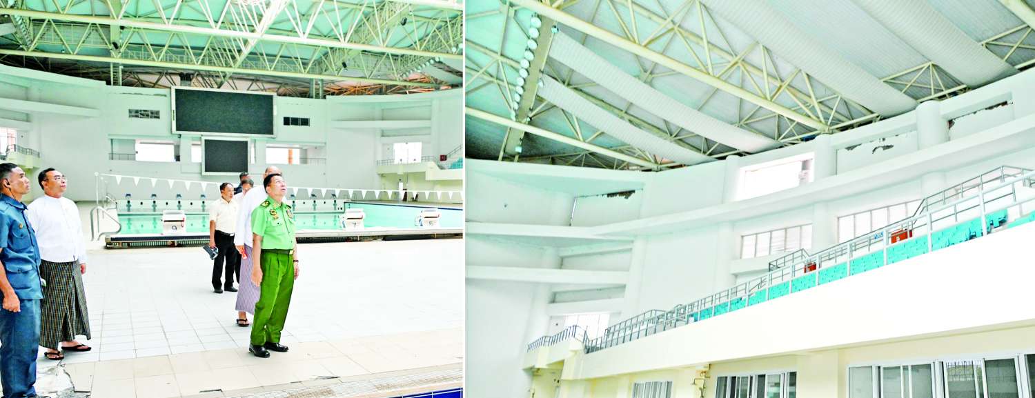 ယင်းနောက် နိုင်ငံတော်စီမံအုပ်ချုပ်ရေးကောင်စီဥက္ကဋ္ဌ နိုင်ငံတော်ဝန်ကြီးချုပ်နှင့် အဖွဲ့ဝင်များသည် ၂၀၁၃ ခုနှစ် မေ ၃၁ ရက်တွင် တည်ဆောက်ပြီးစီးခဲ့သည့် ဝဏ္ဏသိဒ္ဓိအားကစားရုံ(A)နှင့်(B) အဆောက်အအုံနှင့် ၂၀၁၃ ခုနှစ် မေ ၃၀ ရက်တွင် တည်ဆောက်ပြီးစီးခဲ့သည့် ဝဏ္ဏသိဒ္ဓိရေကူးကန်တို့သို့ သွားရောက်၍ ထိခိုက်ပျက်စီးခဲ့ရမှုအခြေအနေများကို ကြည့်ရှုစစ်ဆေးရာ တာဝန်ရှိသူများက ထိခိုက်ပျက်စီးခဲ့မှုများကို ရှင်းလင်းတင်ပြသည်။