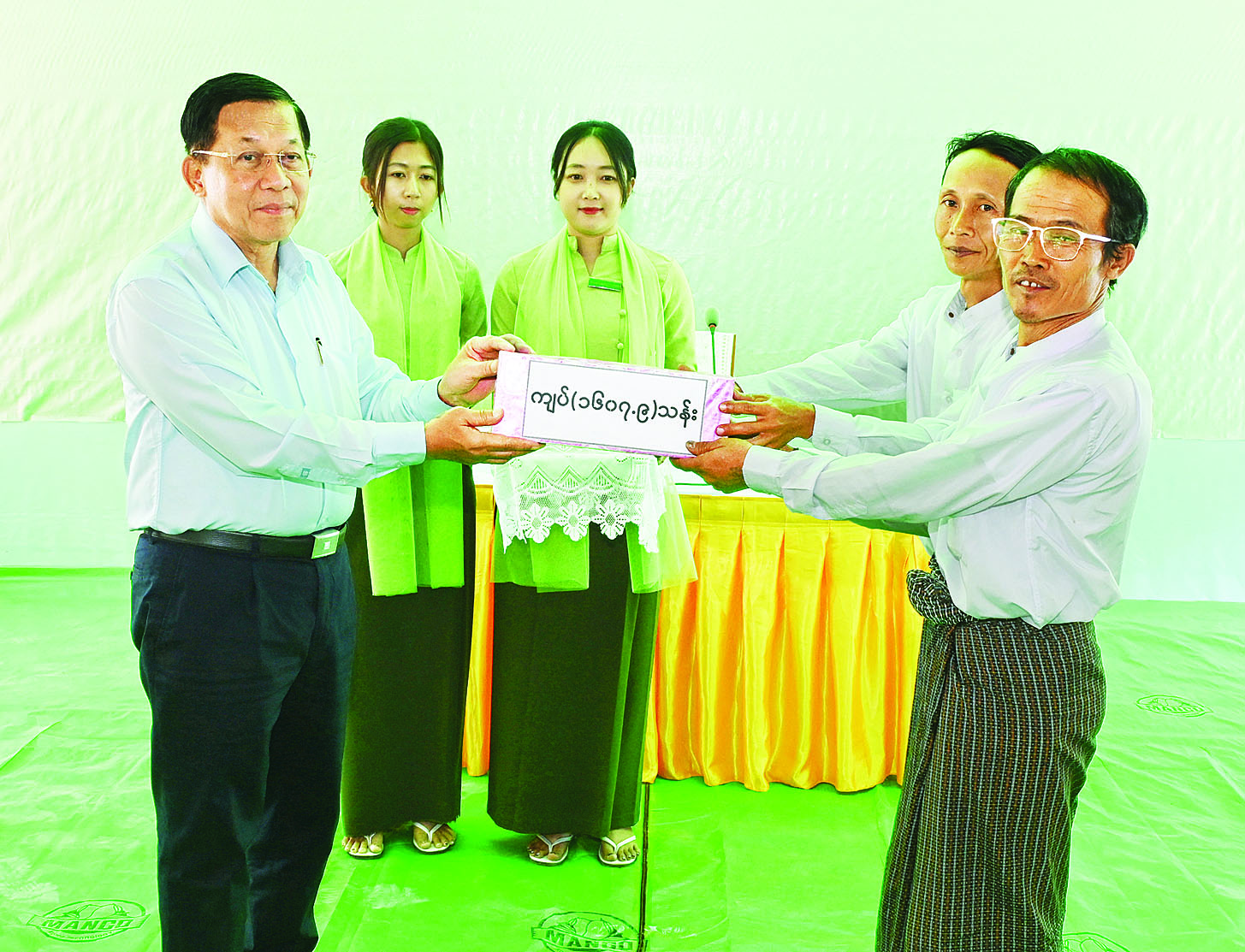 ထို့နောက် နိုင်ငံတော်စီမံအုပ်ချုပ်ရေးကောင်စီဥက္ကဋ္ဌ နိုင်ငံတော်ဝန်ကြီးချုပ်က ငလျင်ဘေးဒဏ်သင့်ပြည်သူများအတွက် စားသောက်ဖွယ်ရာများနှင့် ထောက်ပံ့ငွေများကို ပေးအပ်ရာ တာဝန်ရှိသူများက လက်ခံရယူကြသည်။