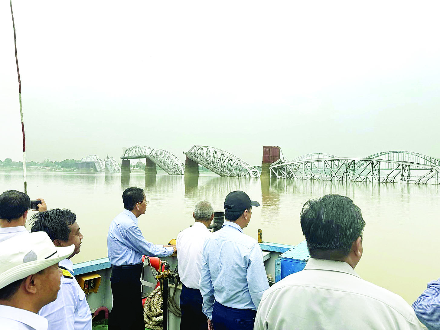 ထို့နောက် ဒုတိယဝန်ကြီးသည် တာဝန်ရှိသူများနှင့်အတူ ပြင်းထန်သော မြေငလျင်ဒဏ်ကြောင့် သံပေါင်ခုံးများ ပြုတ်ကျခဲ့သည့် စစ်ကိုင်းတံတား(အင်းဝ)သို့ သွားရောက်ပြီး မန္တလေးဘက်ကမ်းကပ်ခုံနှင့် မပြုတ်ကျသေးသည့် ပေ ၃၅၀ အရှည် သံပေါင်ခုံး တို့ကိုလည်းကောင်း၊ ဧရာဝတီမြစ်အတွင်း ပြုတ်ကျသွားသည့် သံပေါင်ခုံးများနှင့် ရေလယ်တိုင်များကိုလည်းကောင်း၊ စစ်ကိုင်း ဘက် ကမ်းကပ်ခုံ၊ ပေ ၆၀ သံပေါင် ၆ ခု နှင့် ပေ ၂၅၀ အရှည် သံပေါင်ခုံး တို့ကိုလည်းကောင်း ကွင်းဆင်းစစ်ဆေးပြီး စစ်ဆေးတွေ့ရှိချက်များနှင့်စပ်လျဉ်း၍ ဆက်လက်ဆောင်ရွက် သင့်သည်များကို တာဝန်ရှိသူများအား ဆွေးနွေးမှာကြားသည်။