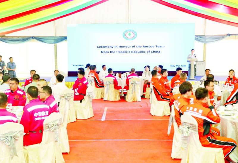 မြန်မာနိုင်ငံ၌ မတ် ၂၈ ရက်တွင် ဖြစ်ပွားခဲ့သည့် ပြင်းထန်ငလျင်နှင့် နောက်ဆက်တွဲငလျင်များကြောင့် ပျက်စီးဆုံးရှုံးမှုများဖြစ်ပေါ်ခဲ့သည့် မြန်မာနိုင်ငံသို့ အရေးပေါ်ကူညီကယ်ဆယ်ရေးလုပ်ငန်းများ လာရောက်လုပ်ဆောင်ခဲ့ပြီး ကယ်ဆယ်ရေးလုပ်ငန်းစဉ်များ ပြီးမြောက်သဖြင့် တရုတ်ပြည်သူ့သမ္မတနိုင်ငံသို့ ပြန်လည်ထွက်ခွာမည့် တရုတ်နိုင်ငံ အရေးပေါ်ကူညီကယ်ဆယ်ရေးအဖွဲ့များအား ဂုဏ်ပြုနှုတ်ဆက်ခြင်းအခမ်းအနားကို ယနေ့နံနက်ပိုင်းတွင် နေပြည်တော်ရှိ တပေါင်းကွင်း၌ ကျင်းပရာ အမျိုးသားသဘာဝဘေးအန္တရာယ်ဆိုင်ရာစီမံခန့်ခွဲမှုကော်မတီဥက္ကဋ္ဌ နိုင်ငံတော်စီမံအုပ်ချုပ်ရေးကောင်စီဒုတိယဥက္ကဋ္ဌ ဒုတိယဝန်ကြီးချုပ် ဒုတိယဗိုလ်ချုပ်မှူးကြီး စိုးဝင်း တက်ရောက်၍ ကျေးဇူးတင် ဂုဏ်ပြုအမှာစကားပြောကြားသည်။