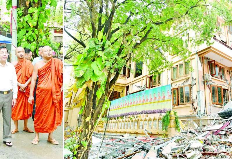 မတ် ၂၈ ရက်က အင်အားပြင်း မြေငလျင်လှုပ်ရှားမှုကြောင့် လမ်းတံတား၊ အဆောက်အအုံများ ထိခိုက်ပျက်စီးခဲ့ရသည့်နေရာများသို့ ကူညီကယ်ဆယ်ရေးလုပ်ငန်းများကို တိုင်းစစ်ဌာနချုပ် အသီးသီးမှတပ်မတော်သားများ၊ မြန်မာနိုင်ငံ ရဲတပ်ဖွဲ့ဝင်များ၊ မီးသတ်တပ်ဖွဲ့ဝင်များ၊ ပြည်ပနိုင်ငံများမှ ကူညီကယ်ဆယ်ရေးအဖွဲ့များ၊ ဌာနဆိုင်ရာဝန်ထမ်းများ၊ လူမှုကူညီရေးအသင်းအဖွဲ့များနှင့် ဒေသခံပြည်သူများပူးပေါင်း၍ အချိန်နှင့်တစ်ပြေးညီ ကူညီဆောင်ရွက်ပေးလျက်ရှိရာ ယနေ့တွင် ကာကွယ်ရေးဦးစီးချုပ်ရုံး(ကြည်း)မှ ဒုတိယဗိုလ်ချုပ်ကြီး မျိုးမိုးအောင်၊ အလယ်ပိုင်းတိုင်းစစ်ဌာနချုပ် တိုင်းမှူး ဗိုလ်မှူးချုပ် ကျော်ကိုထိုက်နှင့် တာဝန်ရှိသူများသည် ချမ်းအေးသာစံမြို့နယ် ပတ်ကုန်းပျော်ဘွယ်ရပ်ကွက် မဟာဝိဇိတာရုံကျောင်းတိုက် ဦးစီးပဓာနနာယကချုပ် ဆရာတော် အဂ္ဂမဟာပဏ္ဍိတ အဂ္ဂမဟာသဒ္ဒမ္မ ဇောတိကဓဇ အဘိဓဇမဟာရဋ္ဌဂုရု နိုင်ငံတော်ဩဝါဒါစရိယ ဘဒ္ဒန္တဝိစာရိန္တာဘိဝံသအား ဖူးမြော်ပြီး ဆရာတော်ကြီး၏ ကျန်းမာရေးဆိုင်ရာများကို မေးမြန်းလျှောက်ထားကာ လှူဖွယ်ပစ္စည်းများ ဆက်ကပ်လှူဒါန်းကြသည်။ ထို့နောက် ဒုတိယဗိုလ်ချုပ်ကြီး မျိုးမိုးအောင်၊ မန္တလေးတိုင်းဒေသကြီးဝန်ကြီးချုပ် ဦးမျိုးအောင်၊ တိုင်းမှူးနှင့်တာဝန်ရှိသူများသည် ဦးလှသိန်းဗိမာန်၌ တိုင်းဒေသကြီး ဦးစီးဌာနနှင့် ကယ်ဆယ်ရေးအဖွဲ့များပူးပေါင်း၍ ရောဂါပိုးမွှားများ ကင်းရှင်းစေရန် ကလိုရင်းပိုးသတ်ဆေးဖျန်းခြင်းများ ဆောင်ရွက်နေမှုများနှင့် ချမ်းမြသာစည် လေယာဉ်ကွင်းဟောင်းနှင့် မန္တလာသီရိ အားကစားကွင်းအတွင်းတို့၌ အိန္ဒိယနိုင်ငံနှင့် ရုရှားနိုင်ငံတို့မှ အကူအညီပေးရေးအဖွဲ့များ၏ ဆေးကုသပေးနေမှုများကို သွားရောက်ကြည့်ရှု၍ လိုအပ်သည်များ ပေါင်းစပ်ညှိနှိုင်းဆောင်ရွက်ပေးသည်။ ထို့နောက် ချမ်းအေးသာစံမြို့နယ် အနီဃာသီလရှင် ပရိယတ္တိစာသင်တိုက်၊ ဣစ္ဆာသယသာသနာ့နုဂ္ဂဟ မင်းကွန်းသီလရှင်စာသင်တိုက်နှင့် ဆူးဖြူသာသနာ့ရိပ်သာတို့သို့သွားရောက်၍ သောက်သုံးရေများ၊ ဆန်၊ ဆီ၊ ခေါက်ဆွဲခြောက်နှင့် စားသောက်ဖွယ်ရာများ ပေးအပ်လှူဒါန်းသည်။