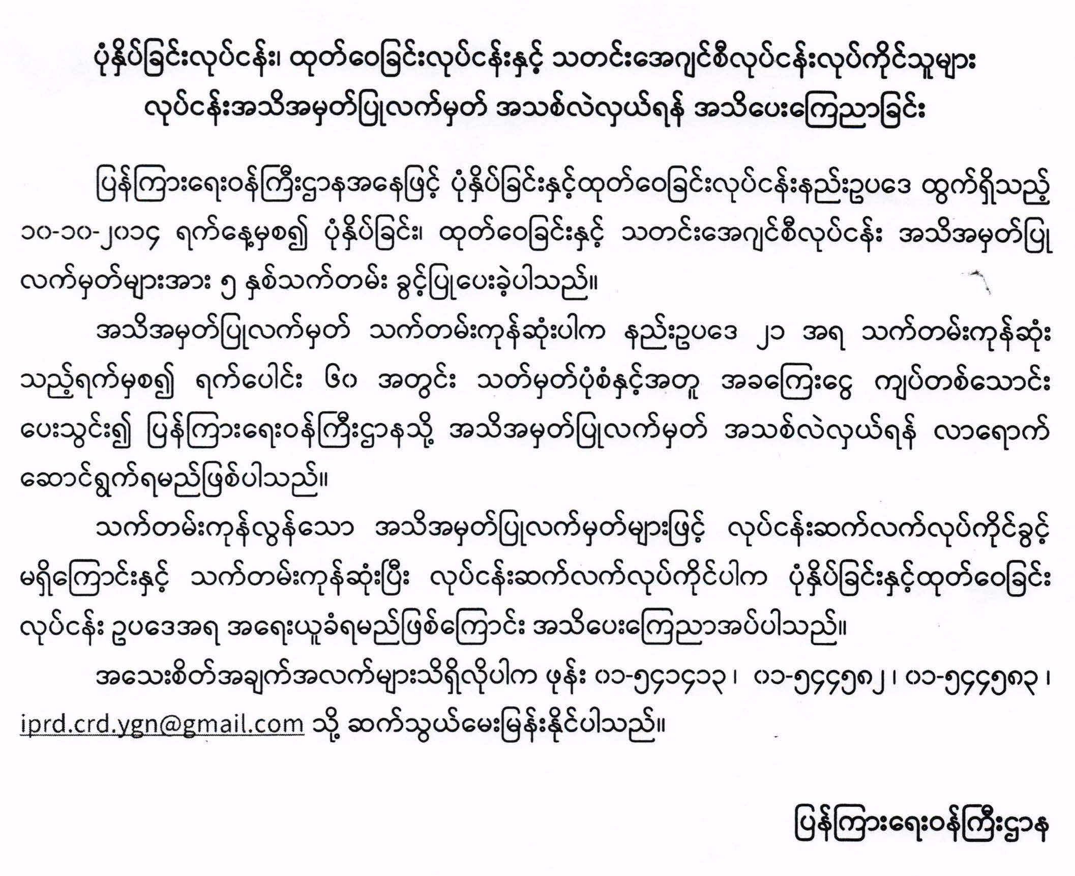 ပုံနှိပ်ခြင်းလုပ်ငန်း၊ ထုတ်ဝေခြင်းလုပ်ငန်းနှင့် သတင်းအေဂျင်စီလုပ်ငန်းလုပ်ကိုင်သူများ လုပ်ငန်း အသိအမှတ်ပြုလက်မှတ် အသစ်လဲလှယ်ရန် အသိပေးကြေညာခြင်း