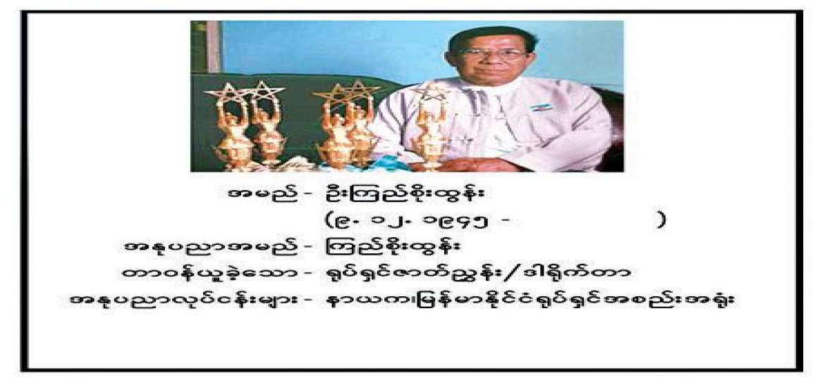 ကြည်စိုးထွန်း ။ ။ အဲဒီတုန်းက ဥက္ကဋ္ဌက။