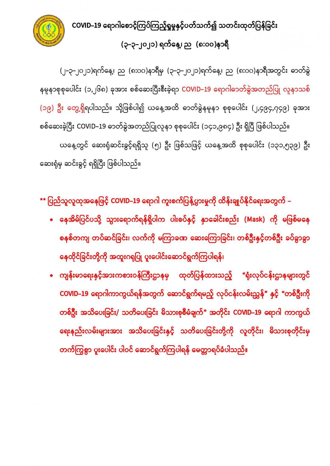 COVID-19 ရောဂါစောင့်ကြပ်ကြည့်ရှုမှုနှင့်ပတ်သက်၍ သတင်းထုတ်ပြန်ခြင်း