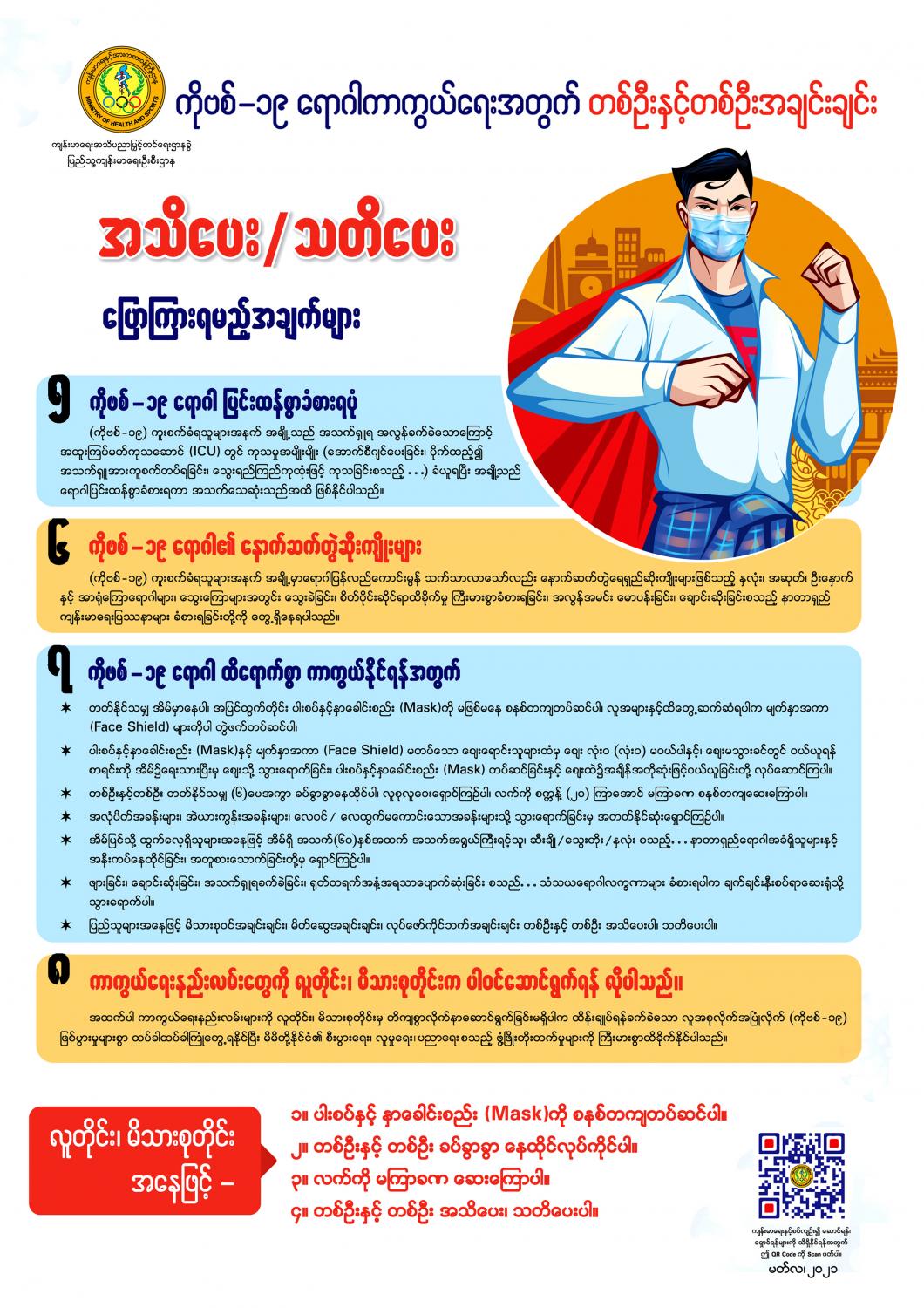 COVID – 19 ကာကွယ်နှိမ်နင်းရေးဆိုင်ရာ ကျန်းမာရေး အသိပညာပေး နှိုးဆော်ချက်