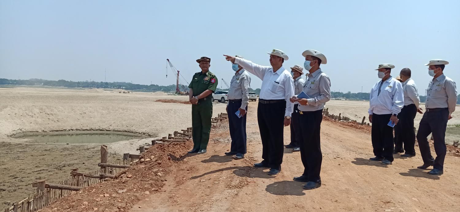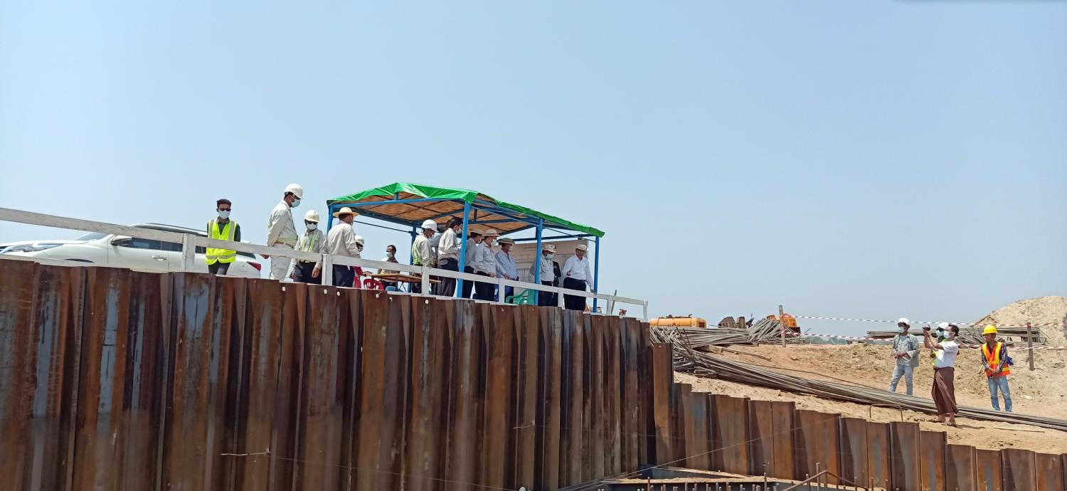 ထို့နောက် ပြည်ထောင်စုဝန်ကြီး၊ မကွေးတိုင်းဒေသကြီး စီမံအုပ်ချုပ်ရေးကောင်စီ အဖွဲ့ဝင်နှင့်တာဝန်ရှိသူများသည် အောင်လံဘက်ခြမ်း တံတားလုပ်ငန်းများ ဆောင်ရွက် ထားရှိမှု အခြေအနေကိုလည်းကောင်း ၊ ရေလည်ကျွန်းပေါ်သို့ သွားရောက်၍ ရေလည် တိုင်အမှတ် (RP6 - RP7- RP8- RP9- RP10- RP11 တိုင်လုပ်ငန်းများ ဆောင်ရွက် နေမှုကိုလည်းကောင်း ရေလည် တိုင်အမှတ်(RP-8)တွင် Pile Cap သံဆင်ခြင်း လုပ်ငန်း ဆောင်ရွက်နေမှု အခြေအနေကို လည်းကောင်း၊ သရက်ဘက်ကမ်းတွင် ရေကြောင်းသွားသ င်္ဘောများ အန္တရာယ်ကင်းစွာ သွားလာနိုင်ရေးနှင့် လုပ်ငန်းဆောင်ရွက်နေမှု အခြေအနေ တို့ကိုလည်းကောင်း ကြည့်ရှုစစ်ဆေး ပြီး တာဝန်ရှိသူများအား လုပ်ငန်းလို အပ်ချက်များ မှာကြားသည်။