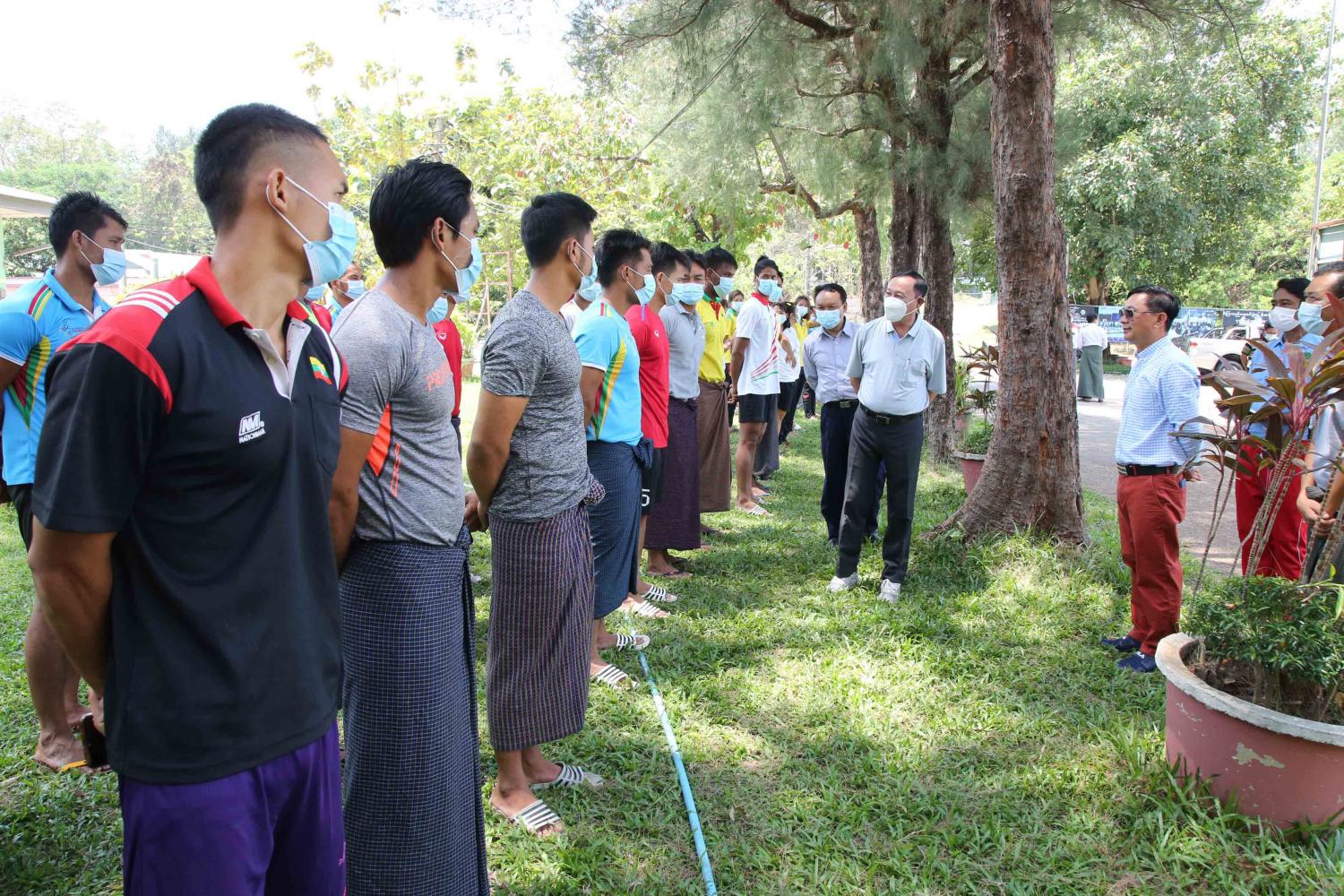 ဒုတိယဝန်ကြီး ဦးမျိုးလှိုင်ရန်ကုန်မြို့တွင် စခန်းသွင်းလေ့ကျင့်နေကြသော အားကစား သမားများကို အားပေးစကား ပြောကြား ခြင်းနှင့် ရန်ကုန်မြို့နှင့် စစ်တွေမြို့ရှိ အားကစား ကွင်း/ရုံများကိုကြည့်ရှုစစ်ဆေး