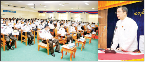ဆောင်ရွက်နေရသူများဖြစ်သည်နှင့်အညီ ဌာန၏အမိန့်၊ ညွှန်ကြားချက် များ၊ လုပ်ထုံး လုပ်နည်းများနှင့်အညီ တိတိကျကျဆောင်ရွက်ကြရန် လိုအပ်ပါကြောင်း၊ လူဝင်မှု ကြီးကြပ် ရေးလုပ်ငန်းများကို အကောင်အထည်ဖော်ရာတွင် နိုင်ငံအတွင်းရှိ နိုင်ငံခြားသား များအား ဥပဒေနှင့် အညီ ဝင်/ထွက်သွားလာနေထိုင်ရေးအတွက် စနစ်တကျ ဂရုပြုဆောင်ရွက်ကြရန်၊ နိုင်ငံတွင်းရှိ ပြည်သူများအား ၎င်းတို့၏ နိုင်ငံသား ဖြစ်မှု အရည်အချင်းအရ ကိုင်ဆောင်သင့်သည့် ကတ်ပြားတစ်မျိုးမျိုးရရှိကိုင်ဆောင်နိုင်ရေးနှင့် ပြည်သူ့အင်အားဆိုင်ရာလုပ်ငန်းများ တိကျမှန် ကန်စွာဆောင်ရွက်နိုင်ရေးတို့ကိုလည်း အလေးထားကြိုးပမ်းဆောင်ရွက်ကြရန် လိုအပ်ပါ ကြောင်း၊ တာဝန်ရှိသူအဆင့်ဆင့်ကလည်း ဝန်ထမ်းများ၏သက်သာ ချောင်ချိရေးနှင့် လုပ်ငန်း လိုအပ်ချက်များကို အတတ်နိုင်ဆုံး အလေးထားဖြည့်ဆည်းပေးကြရန်လိုကြောင်း၊ ယခု ဆန္ဒဖော်ထုတ်ပွဲတွင်လည်း မိမိတို့၏လိုအပ်ချက်များ၊ ဌာနမှ ဖြည့်ဆည်းပေးရန်များကို ပွင့်ပွင့်လင်းလင်းတင်ပြပေးကြရန် တိုက်တွန်း ပါကြောင်း ရှင်းလင်းပြောကြားသည်။
