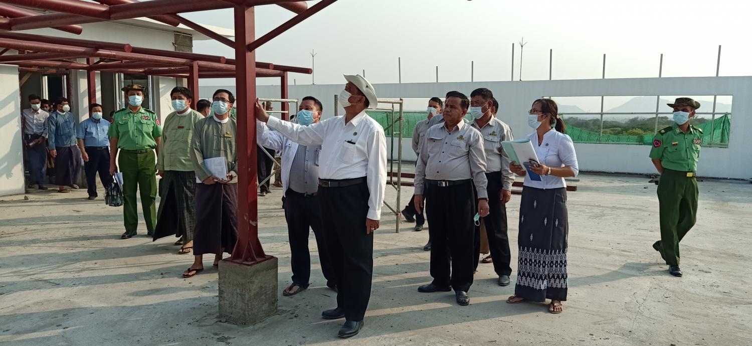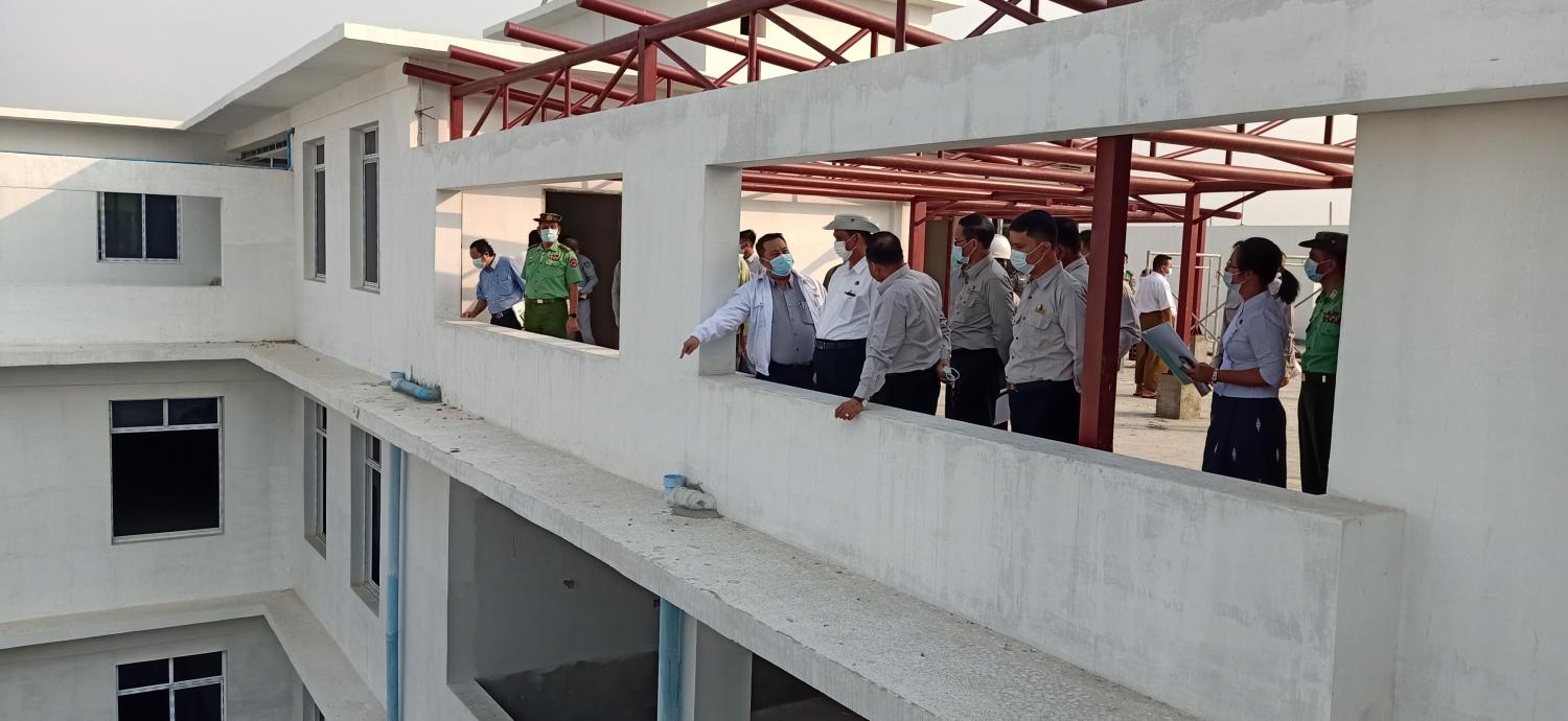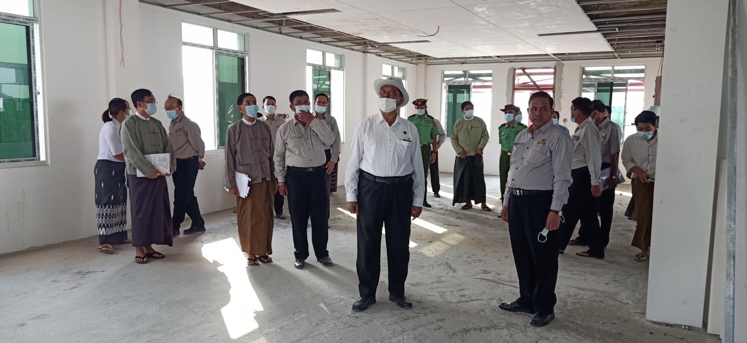ပြည်ထောင်စုဝန်ကြီး ဦးရွှေလေး စစ်ကိုင်းတိုင်းဒေသကြီး မုံရွာမြို့ရှိ ပြည်သူ့ဆေးရုံ ကြီးတိုးချဲ့ ( ၅ ) ထပ် လူနာကုသဆောင်တည်ဆောက်ရေးလုပ်ငန်းများအား ကြည့်ရှု စစ်ဆေး