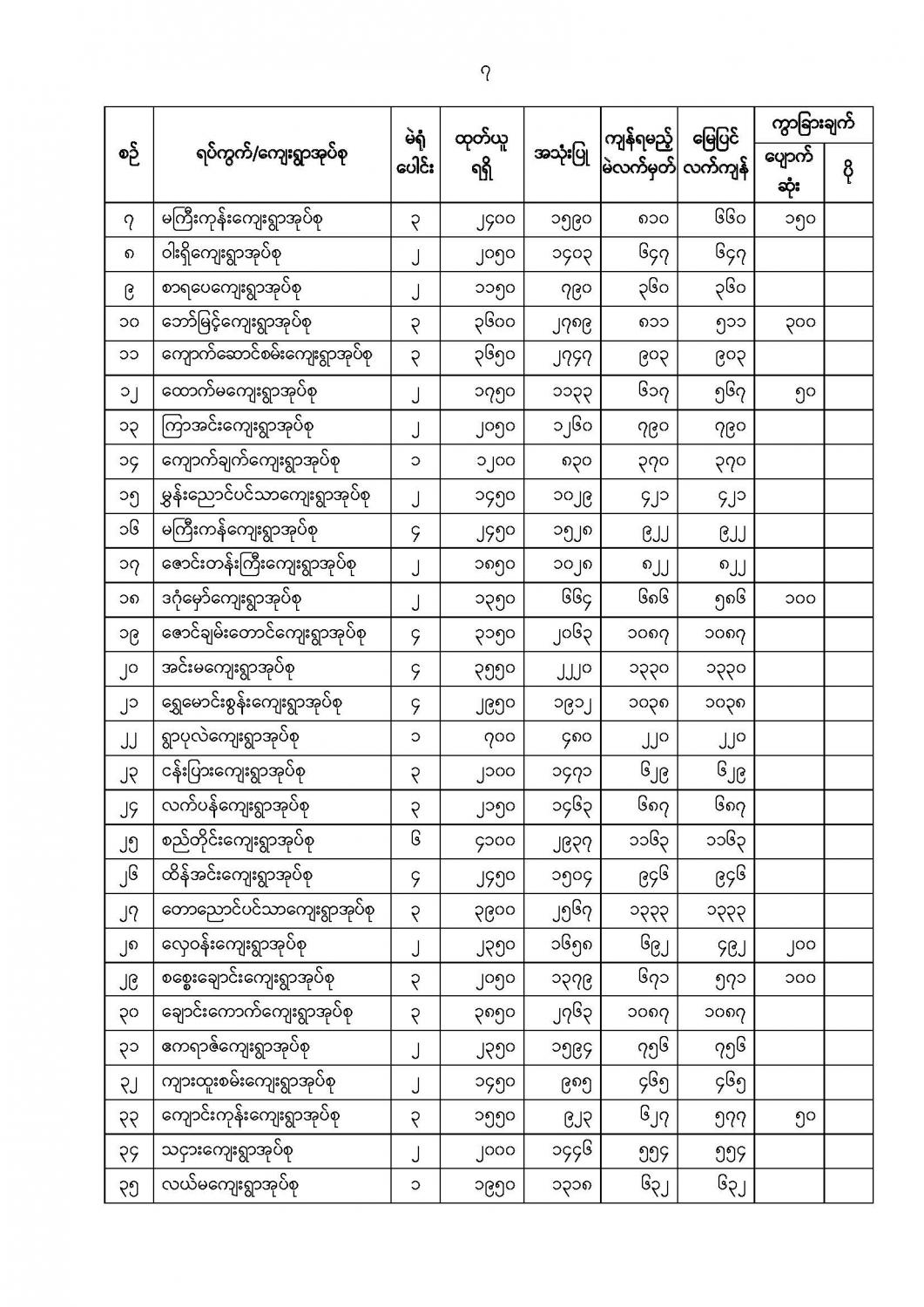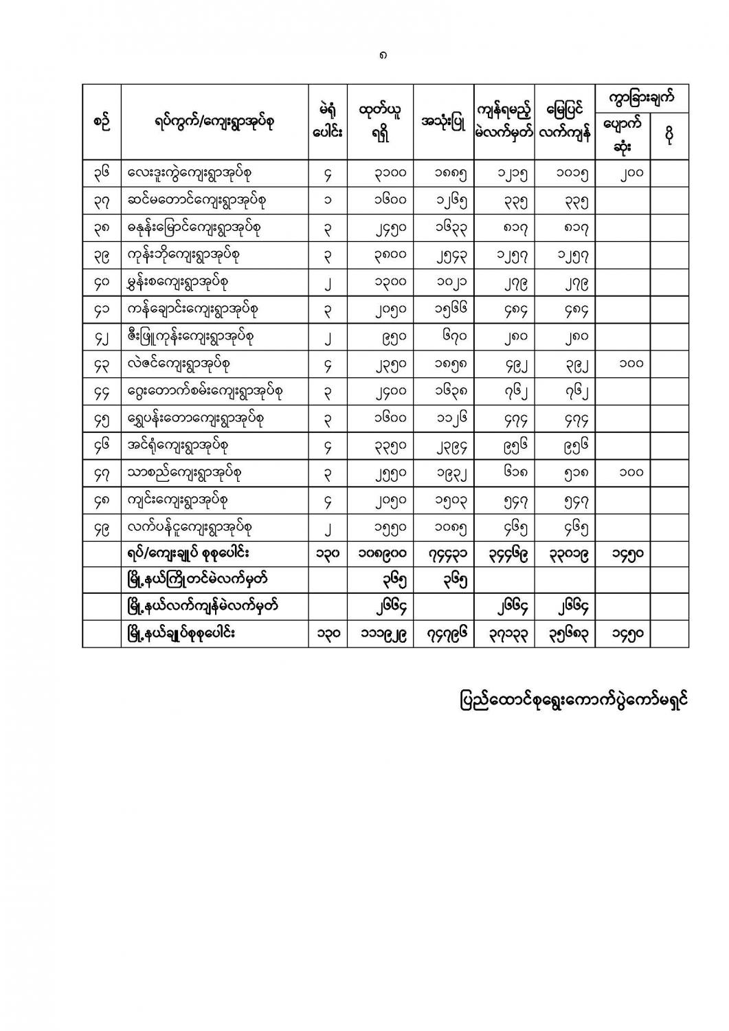 ဦးစီးဌာနနှင့် လုပ်ငန်းများ၏ ကြေညာချက်များ