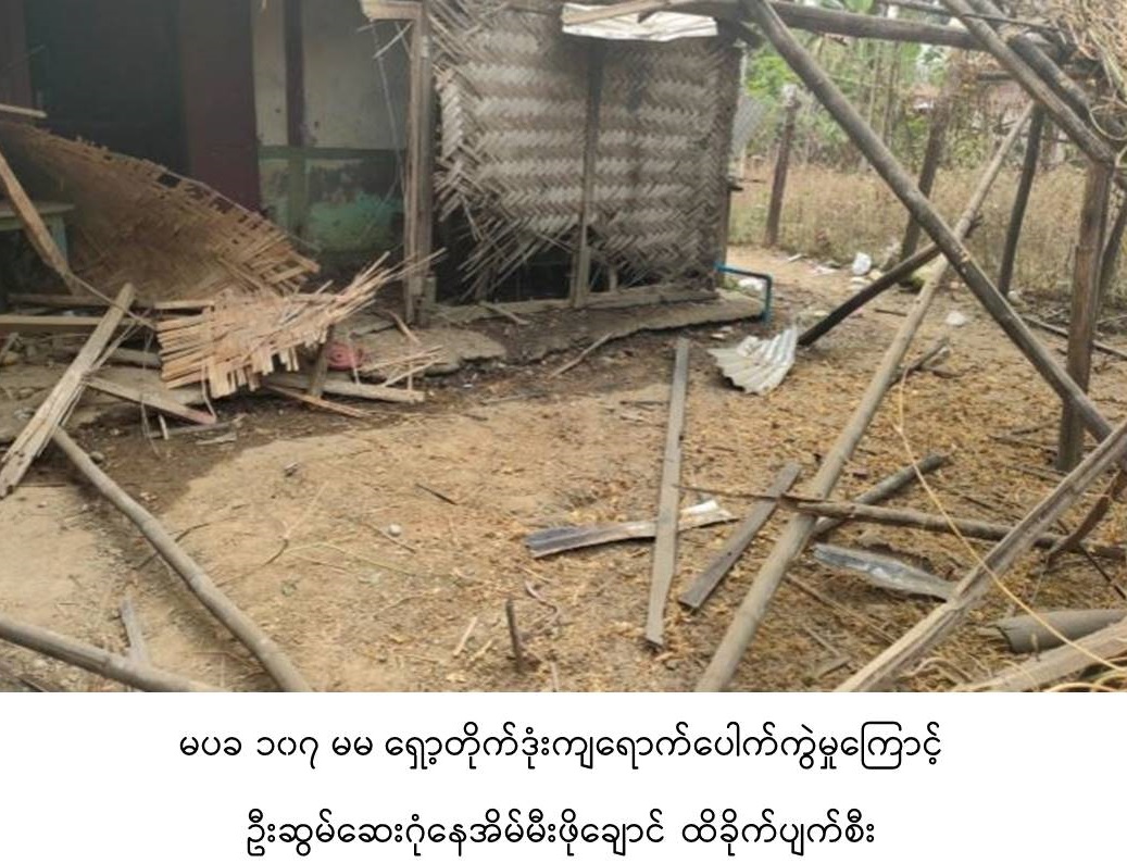 အဆိုပါ ရှော့တိုက်ဒုံးကျရောက်ပေါက်ကွဲမှုကြောင့် အောက်မော်ဖောင်းကျေးရွာ ရှိ ဦးဆွမ်ဆေးဂုံ ၏ နေအိမ်မီးဖိုးချောင် သွပ်အမိုး နှင့်ထရံများ ပျက်စီးခဲ့ပြီး၎င်း၏ ယာဘက် ကျောကုန်းနှင့် တင်ပါးတို့တွင် လက်နက်ကြီးစထိမှန် ဒဏ်ရာများရရှိခဲ့ သဖြင့် မြစ်ကြီးနားမြို့ရှိ တပ်မတော်ဆေးရုံသို့ ပို့ဆောင် ဆေးကုသမှုခံယူစေလျက်ရှိ သည်။
