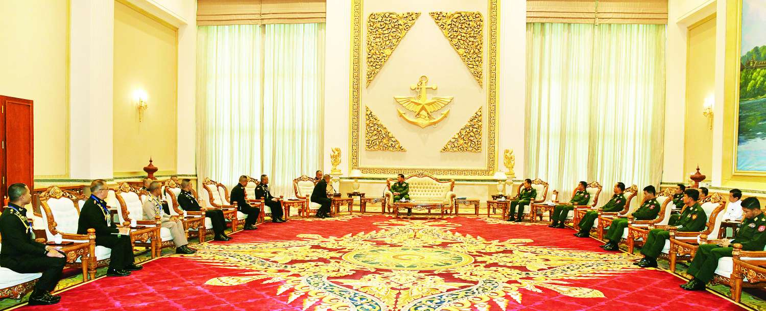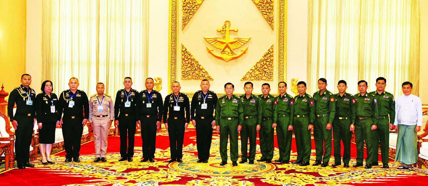 နိုင်ငံတော်စီမံအုပ်ချုပ်ရေးကောင်စီဥက္ကဋ္ဌ တပ်မတော်ကာကွယ်ရေးဦးစီးချုပ် ဗိုလ်ချုပ်မှူးကြီး မင်းအောင်လှိုင်အား မြန်မာနိုင်ငံကအိမ်ရှင်အဖြစ် လက်ခံကျင်းပပြုလုပ်သော (၃၄)ကြိမ်မြောက် မြန်မာ-ထိုင်း ဒေသဆိုင်ရာ နယ်ခြားကော်မတီအစည်းအဝေးသို့ တက်ရောက်ခဲ့သည့် ထိုင်းကိုယ်စားလှယ်အဖွဲ့ခေါင်းဆောင် Lt.Gen. Apichet Suesat ဦးဆောင်သည့် ကိုယ်စားလှယ်အဖွဲ့က ယနေ့မွန်းလွဲပိုင်းတွင် နေပြည်တော်ရှိ ဇေယျာသီရိဗိမာန် ဧည့်ခန်းမဆောင်၌ လာရောက်ဂါရဝပြု တွေ့ဆုံသည်။