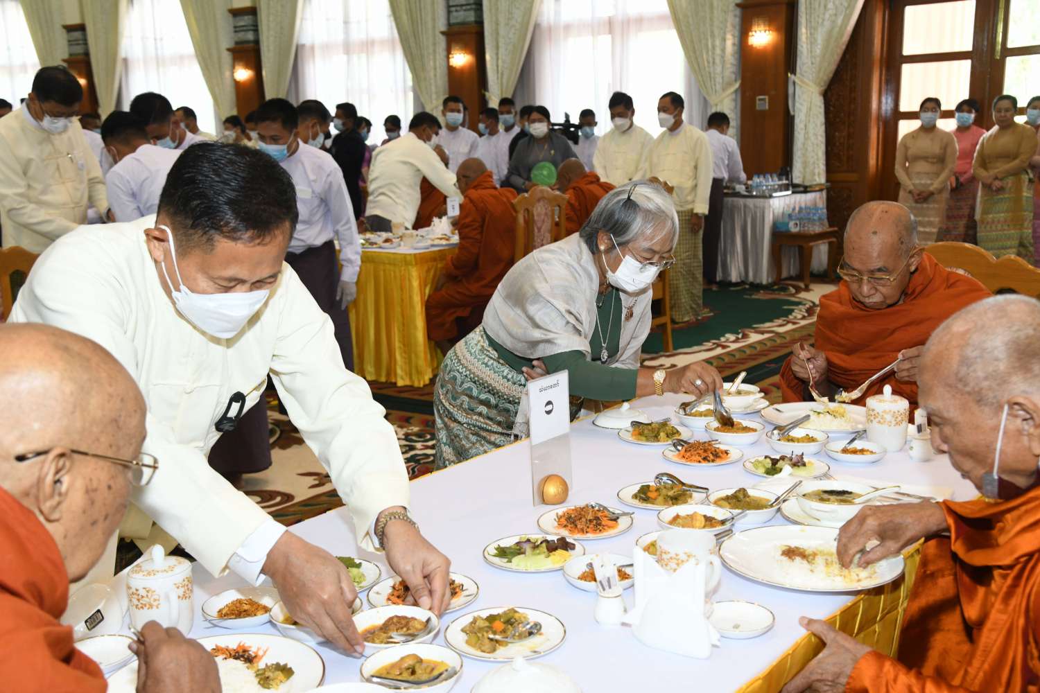 အခမ်းအနားအပြီးတွင် နိုင်ငံတော်စီမံအုပ်ချုပ်ရေးကောင်စီဥက္ကဋ္ဌ တပ်မတော်ကာကွယ်ရေးဦးစီးချုပ်နှင့်ဇနီး၊ နိုင်ငံတော်စီမံအုပ်ချုပ်ရေးကောင်စီဒုတိယဥက္ကဋ္ဌ၊ ဒုတိယတပ်မတော်ကာကွယ်ရေးဦးစီးချုပ် ကာကွယ်ရေးဦးစီးချုပ်(ကြည်း)နှင့်ဇနီး နှင့် အခမ်းအနားတက်ရောက်လာကြသည့် တပ်မတော်အရာရှိကြီးများသည် ဗန်းမော်ဆရာတော်ဘုရားကြီး အမှူးပြုသည့် ဆရာတော်၊ သံဃာတော်များအား နေ့ဆွမ်းဆက်ကပ် လှူဒါန်းခဲ့ကြောင်း သတင်းရရှိသည်။