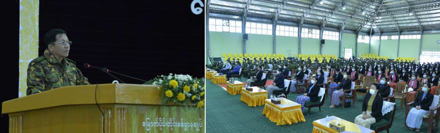 ယင်းနောက် နိုင်ငံတော်စီမံအုပ်ချုပ်ရေးကောင်စီဥက္ကဋ္ဌ တပ်မတော်ကာကွယ်ရေးဦးစီးချုပ် က အရာရှိ၊ စစ်သည်၊ မိသားစုများအတွက် စားသောက်ဖွယ်ရာပစ္စည်းများကို ပေးအပ်ရာ တပ်နယ်မှူးကလည်းကောင်း၊ နိုင်ငံတော်စီမံအုပ်ချုပ်ရေးကောင်စီဥက္ကဋ္ဌ တပ်မတော် ကာကွယ်ရေးဦးစီးချုပ်၏ဇနီးက တပ်နယ်မိခင်နှင့်ကလေးစောင့်ရှောက်ရေးအသင်းအတွက် ချီးမြှင့်ငွေများကိုပေးအပ်ရာ တပ်နယ်မှူး၏ဇနီးကလည်းကောင်း အသီးသီး လက်ခံရယူ ကြသည်။