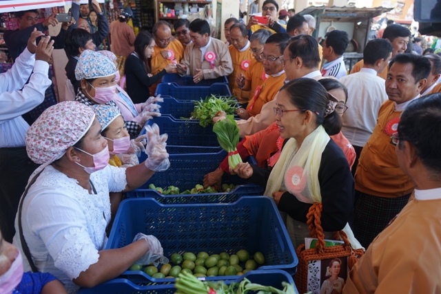 ဈေးကွက်ဖော်ဆောင်မှု ဖွင့်ပွဲအခမ်းအနားကို မန္တလေးတိုင်းဒေသကြီးလွှတ်တော်ဥက္ကဋ္ဌ ဦးအောင်ကျော်ဦး၊ တိုင်းဒေသကြီး စိုက်ပျိုးရေး၊ မွေးမြူရေးနှင့် ဆည်မြောင်းဝန်ကြီးဌာန ဝန်ကြီးဒေါက်တာစိုးသန်းနှင့် တိုင်းဒေသကြီးလွှတ်တော် ဒုတိယဥက္ကဋ္ဌ ဒေါက်တာခင်မောင်ဌေးတို့က ဖဲကြိုးဖြတ် ဖွင့်လှစ်ပေးခဲ့ကြပြီး ဘေးကင်းလုံခြုံသော ဟင်းသီးဟင်းရွက်ရောင်းချနေမှုများ ကိုကြည့်ရှု အားပေးခဲ့ကြသည်။ ထို့နောက် တိုင်းဒေကြီးလွှတ်တော် ဥက္ကဋ္ဌနှင့် ဝန်ကြီးများသည် ဘေးကင်းလုံခြုံသော ဟင်းသီးဟင်းရွက်များ စိုက်ပျိုးသည့် ကတဲကျေးရွာအုပ်စု၊ ရန်ပုံနှစ်ကျေးရွာသို့ သွားရောက်ခဲ့ကြပြီး ဟင်းသီးဟင်းရွက်များ သန့်ရှင်းစေရေး ဆောင်ရွက်လျက်ရှိသည့် ရေသန့်စက်ရုံနှင့် ငရုပ်သီး အခြောက်ခံစက်တို့အား ဖဲကြိုးဖြတ်ဖွင့်လှစ်ပေးခဲ့ပြီး သီးနှံစိုက်ခင်းများအား ကွင်းဆင်းကြည်ရှုလေ့လာခဲ့ကြသည်။
