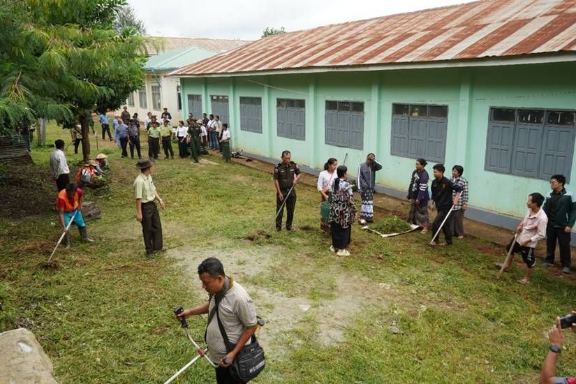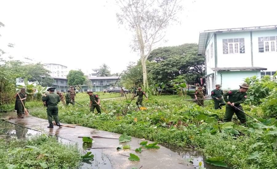 ထိုသို့ ဆောင်ရွက်ပေးလျက်ရှိရာ ယနေ့တွင် ရှမ်းပြည်နယ်(အရှေ့ပိုင်း)၊ ကျိုင်းတုံမြို့နှင့် မိုင်းယောင်းမြို့၊ ရန်ကုန်တိုင်းဒေသကြီး၊ မင်္ဂလာဒုံမြို့နယ်အပါအဝင် မြို့နယ် ၂၀ မြို့နယ်တို့၌ နယ်မြေခံတပ်မတော်သားများ၊ ဌာနဆိုင်ရာဝန်ထမ်းများ၊ လူမှုရေးအသင်းအဖွဲ့များနှင့် ဒေသခံပြည်သူများက အခြေခံပညာကျောင်းများ အတွင်း/အပြင်ရှိ ချုံနွယ်ပေါင်းမြက်များ ခုတ်ထွင်ရှင်းလင်းခြင်း၊ အမှိုက်များရှင်းလင်းခြင်း၊ ရေစီးရေလာကောင်းမွန်စေရေး ရေနုတ်မြောင်းများတူးဖော်ပေးခြင်း၊ ရေကန်များတွင် အဘိတ်ဆေးများခတ်ပေးခြင်း၊ ခြင်ခိုအောင်းနိုင်သည့်နေရာများအား ခြင်ဆေးဖျန်းခြင်းနှင့် ကျန်းမာရေးအသိပညာပေး လက်ကမ်းစာစောင်များ ဖြန့်ဝေပေးခြင်းများကို စုပေါင်းဆောင်ရွက်ကြသည်။