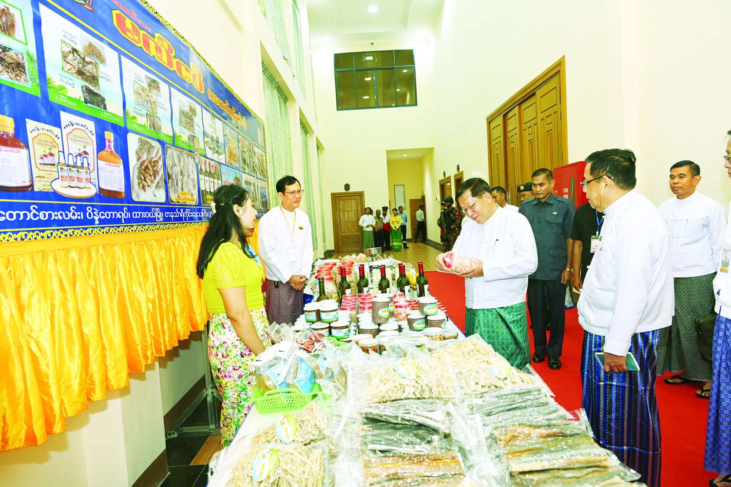 ယင်းနောက် အခမ်းအနားအပြီးတွင် ယာယီသမ္မတနိုင်ငံတော်လုံခြုံရေးနှင့် အေးချမ်းသာယာရေးကော်မရှင်ဥက္ကဋ္ဌနှင့် တာဝန်ရှိသူများသည် အခမ်းအနားတက်ရောက်လာကြသူများအား ရင်းရင်းနှီးနှီးနှုတ်ဆက်ခဲ့ပြီး ခင်းကျင်းပြသထားသည့် တနင်္သာရီတိုင်းဒေသကြီးအတွင်းမှ MSME ထုတ်ကုန်ပြခန်းများအား ပြခန်းတစ်ခုချင်းစီအလိုက် လေ့လာကြည့်ရှုခဲ့ကြောင်းနှင့် သိရှိလိုသည်များ မေးမြန်းဆွေးနွေးခဲ့သည်။