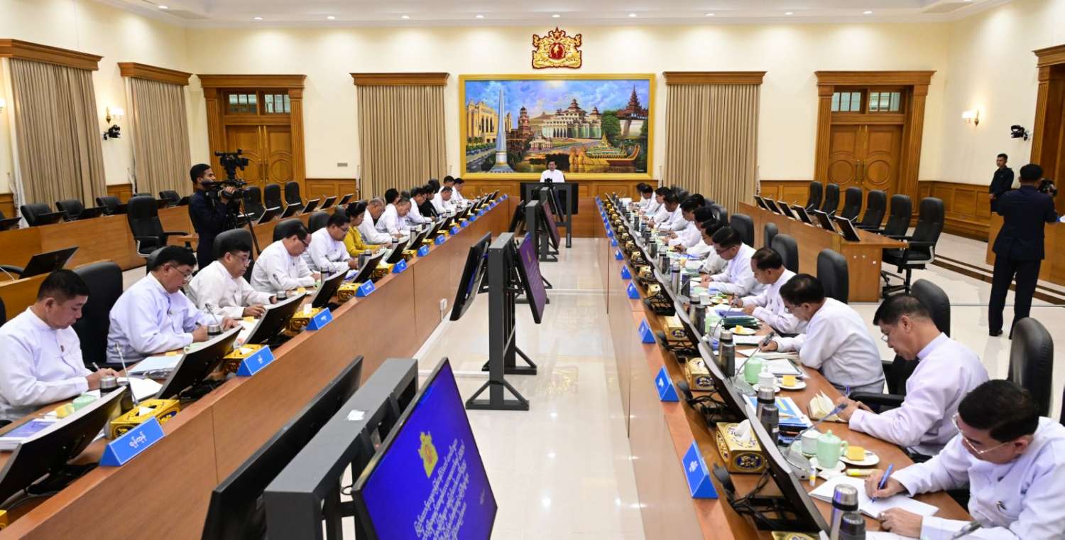 ပြည်ထောင်စုသမ္မတမြန်မာနိုင်ငံတော်ယာယီသမ္မတ နိုင်ငံတော်လုံခြုံရေးနှင့်အေးချမ်းသာယာရေးကော်မရှင်ဥက္ကဋ္ဌ ဗိုလ်ချုပ်မှူးကြီး မင်းအောင်လှိုင်နှင့် ပြည်ထောင်စုဝန်ကြီးများ၊ နေပြည်တော်ကောင်စီဥက္ကဋ္ဌ၊ တိုင်းဒေသကြီး/ ပြည်နယ်ဝန်ကြီးချုပ်များ လုပ်ငန်းညှိနှိုင်းအစည်းအဝေး ပြုလုပ်