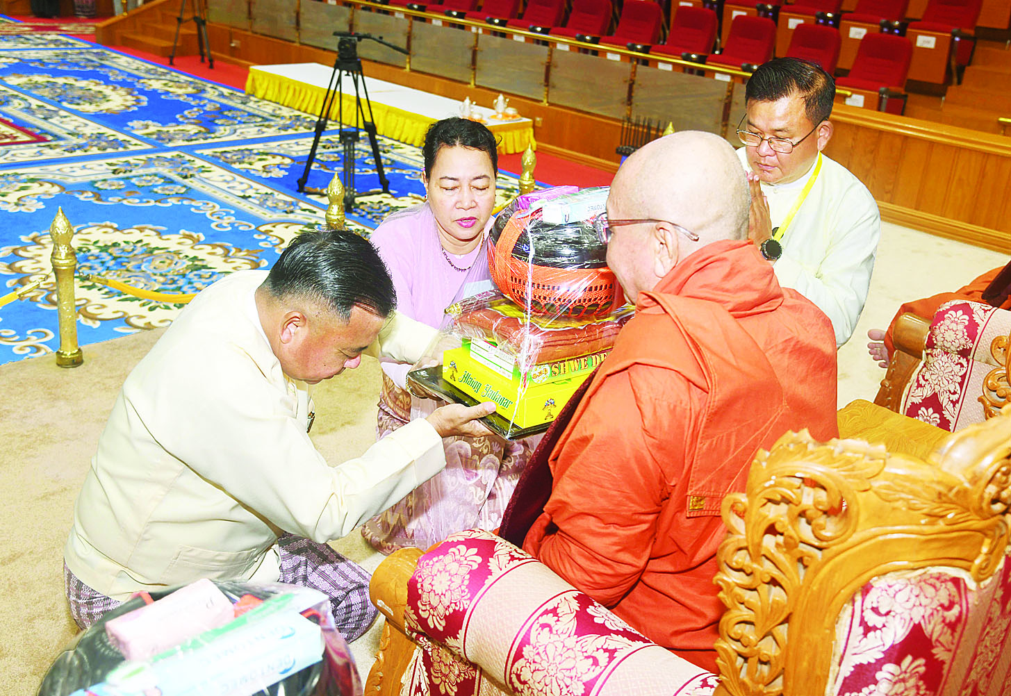 ယင်းနောက် ကော်မရှင်ဒုတိယဥက္ကဋ္ဌနှင့် ဇနီးတို့သည် နိုင်ငံတော်သံဃမဟာနာယကအဖွဲ့ အကျိုးတော်ဆောင် မန္တလေးမြို့၊ မစိုးရိမ်တိုက်သစ် မဟာနာယက၊ ဓမ္မသမိဒ္ဓိကျောင်း ဆရာတော်ကြီးထံ ကထိန်သင်္ကန်းနှင့် လှူဖွယ်ပစ္စည်းများကို ဆက်ကပ်လှူဒါန်းသည်။