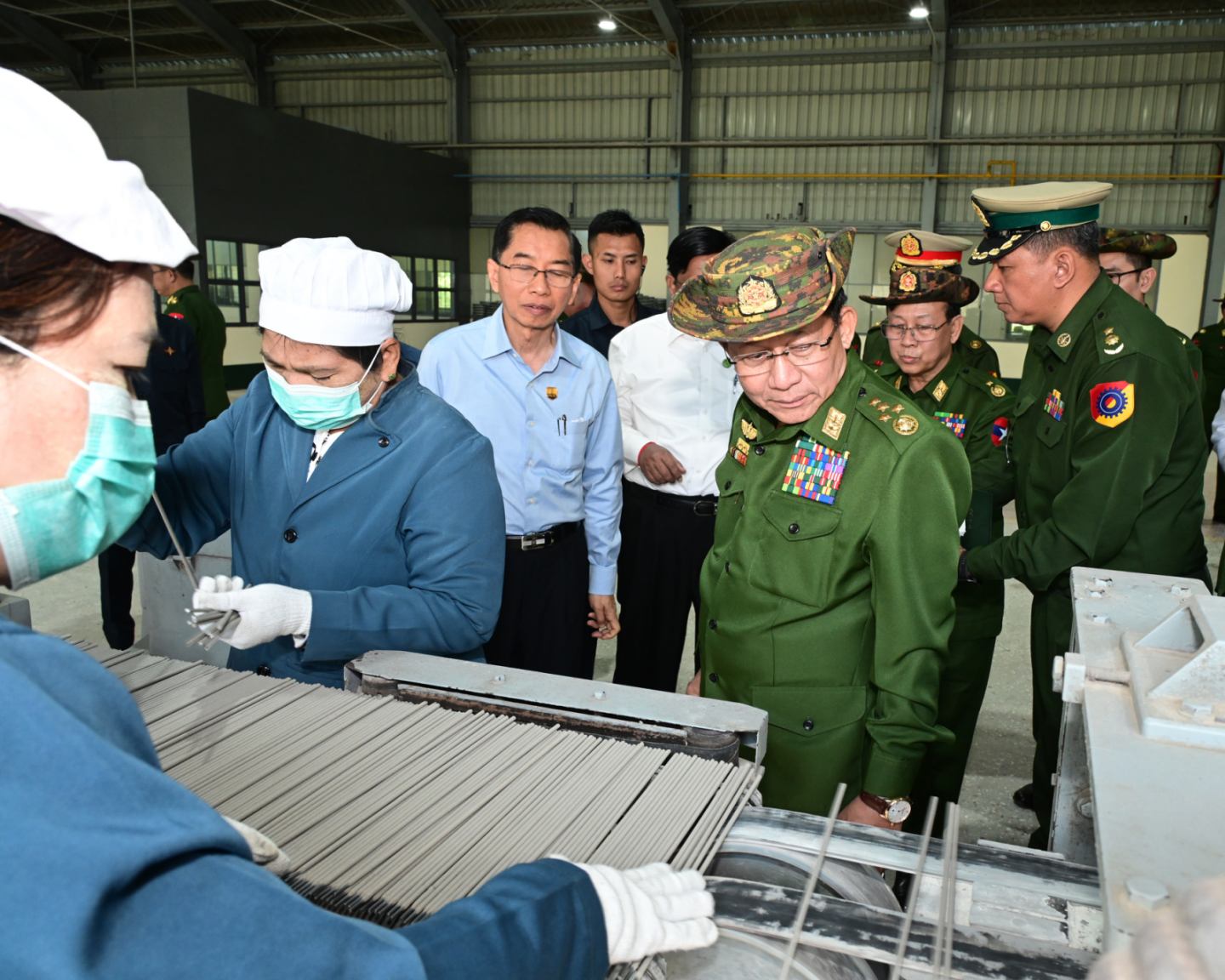နိုင်ငံတော်လုံခြုံရေးနှင့်အေးချမ်းသာယာရေးကော်မရှင်ဥက္ကဋ္ဌ တပ်မတော်ကာကွယ်ရေးဦးစီးချုပ် ဗိုလ်ချုပ်မှူးကြီး မင်းအောင်လှိုင်သည် ကော်မရှင်အတွင်းရေးမှူး ဗိုလ်ချုပ်ကြီး ရဲဝင်းဦး၊ ခရီးစဉ်တွင် လိုက်ပါလာသည့်အဖွဲ့ဝင်များ၊ တောင်ပိုင်းတိုင်းစစ်ဌာနချုပ်တိုင်းမှူးနှင့် တာဝန်ရှိသူများလိုက်ပါ၍ ယနေ့တွင် ပဲခူးတိုင်းဒေသကြီး၊ ဆင်တဲနှင့်ထုံးဘိုတို့ရှိ နယ်မြေခံတပ်မတော်အကြီးစားစက်ရုံများ၌ လယ်ယာသုံးစက်ကိရိယာများ၊ မော်တော်ယာဉ်များထုတ်လုပ်နေမှု အခြေအနေများကို သွားရောက်ကြည့်ရှုစစ်ဆေးသည်။