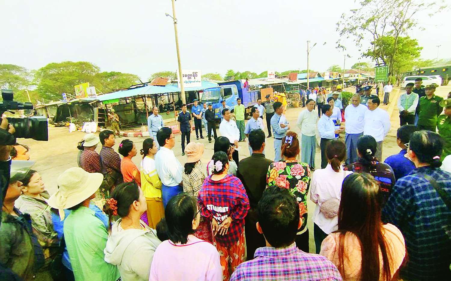 နိုင်ငံတော်ဝန်ကြီးချုပ် ဦးညိုစောနှင့် အဖွဲ့ဝင်များ နေပြည်တော်ကောင်စီနယ်မြေ ပျဉ်းမနားမြို့နယ်ရှိ အာဟာရသုခဈေး၌ မီးလောင်မှုဖြစ်ပွားခဲ့သည့်နေရာသို့ သွားရောက်ကြည့်ရှုစစ်ဆေး