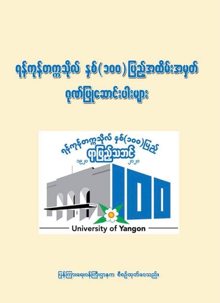 အဆိုပါ ဆောင်းပါးများကို တစ်စုတစ်စည်းတည်း စုစည်း၍ “ရန်ကုန်တက္ကသိုလ်နှစ် ၁၀၀ ပြည့် အထိမ်းအမှတ် ဂုဏ်ပြုဆောင်းပါးများ” စာအုပ်အဖြစ် ၂၀၂၀ ပြည့်နှစ် ဒီဇင်ဘာလ(၁)ရက် နေ့တွင် ပြန်ကြားရေးနှင့်ပြည်သူ့ဆက်ဆံရေးဦးစီးဌာနက စီစဉ် ထုတ်ဝေမည်ဖြစ်ပါသည်။