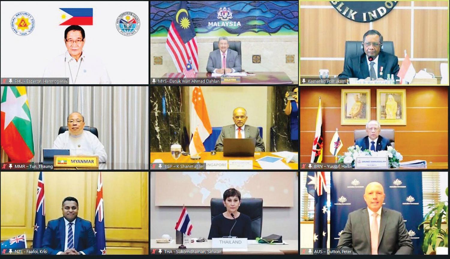 အစည်းအဝေးတွင် ပြည်ထောင်စုဝန်ကြီးနှင့် အမျိုးသားလုံခြုံရေးဆိုင်ရာ အကြံပေးပုဂ္ဂိုလ် ဦးသောင်းထွန်းက အကြမ်းဖက်မှု ဆန့်ကျင်ရေးနှင့် နိုင်ငံဖြတ်ကျော် လုံခြုံရေးဆိုင်ရာ ကိစ္စရပ်များအပေါ် ကိုဗစ်-၁၉ အကျိုး သက်ရောက်မှုနှင့် ပြည်ပမှ အကြမ်း ဖက် တိုက်ခိုက်သူများ (Foreign Terrorist Fighters regional prepa- redness)အပိုင်းတွင် ပါဝင်ဆွေးနွေးသည်။