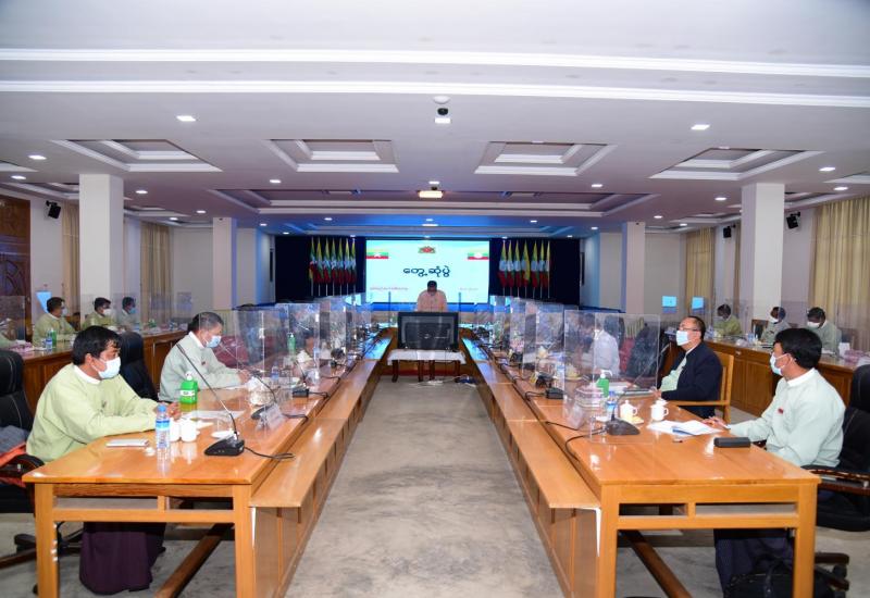 ရာသီဥတုပြောင်းလဲမှုဖြစ်စဉ်ကြောင့် ကြုံတွေ့လာရသည့် ရေရှားပါးလာမှုကို ဖြေရှင်းနိုင်ရန် ရေရရှိရေး ဆောင်ရွက်နေသော လုပ်ငန်းများနှင့် ဆောင်ရွက်သင့်သည့် လုပ်ငန်းစဉ်များဆိုင်ရာ ညှိနှိုင်းအစည်းအဝေးကို ယနေ့မွန်းလွဲပိုင်းက စိုက်ပျိုးရေး၊ မွေးမြူရေးနှင့် ဆည်မြောင်း ဝန်ကြီးဌာန ပြည်ထောင်စုဝန်ကြီးရုံး အစည်းအဝေးခန်းမ၌ ကိုဗစ်-၁၉ တားဆီးကာကွယ်ရေး ဆိုင်ရာ ညွှန်ကြားချက်များနှင့်အညီ ကျင်းပသည်။