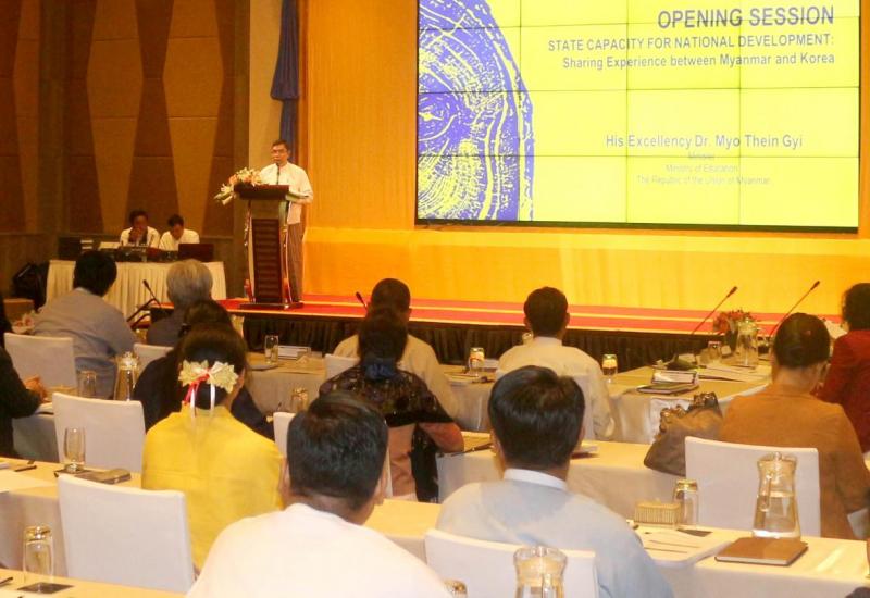 မြန်မာနိုင်ငံနှင့် တောင်ကိုရီးယားနိုင်ငံတို့မှ တက္ကသိုလ်များ၊ အစိုးရအဖွဲ့အစည်းများကြား နိုင်ငံဖွံ့ဖြိုးတိုးတက်ရေးမူဝါဒဆိုင်ရာ သုတေသနုကွန်ရက်တည်ထောင်ရန်နှင့် အတွေ့အကြုံပညာရပ်များ ဖလှယ်ရန်ရည်ရွယ်ကျင်းပသည့် အလုပ်ရုံဆွေးနွေးပွဲကို ယနေ့ နံနက် ၉ နာရီခွဲက နေပြည်တော်ရှိ Hilton Hotel တွင် ကျင်းပသည်။