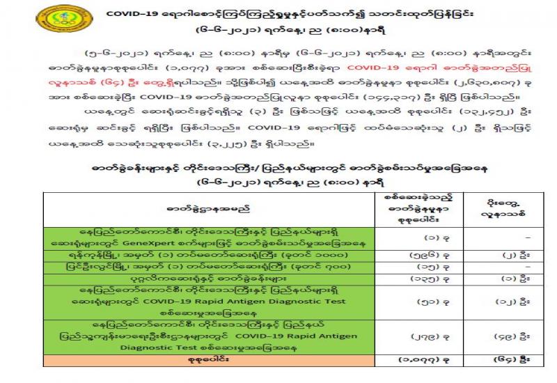 (၂၀၂၁ ခုနှစ်၊ ဇွန်လ (၆)ရက်နေ့ ည(၇:၀၀)နာရီအချိန် ထုတ်ပြန်ချက်)