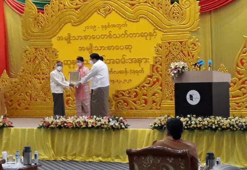 ၂၀၁၉ ခုနှစ်အတွက် အမျိုးသားစာပေတစ်သက်တာဆုနှင့် အမျိုးသားစာပေဆုချီးမြှင့်ပွဲ အခမ်းအနားကို ယနေ့ နံနက် ၉ နာရီ ခွဲတွင်ရန်ကုန်မြို့၊ လမ်းမတော် မြို့နယ်ရှိ မြန်မာနိုင်ငံကုန်သည်များနှင့် စက်မှုလက်မှု လုပ်ငန်းရှင်များ အသင်းချုပ် (UMFCCI) ခန်းမ၌ ကျင်းပရာ ပြန်ကြားရေးဝန်ကြီးဌာန၊ ပြည်ထောင်စု ဝန်ကြီး ဒေါက်တာဖေမြင့်၊ ရန်ကုန်တိုင်းဒေသကြီး ဝန်ကြီးချုပ် ဦးဖြိုးမင်းသိန်း၊ ရန်ကုန်တိုင်းဒေသကြီး၊ လွှတ်တော်ဥက္ကဌ ဦးတင်မောင်ထွန်း နှင့် တိုင်းဒေသ ကြီး ဝန်ကြီးများ၊ ဌာနဆိုင်ရာအကြီးအကဲများ၊ စာပေပညာရှင်များ၊ ဖိတ်ကြားထားသည့် ဧည့်သည်တော်များ တက်ရောက်ကြသည်။