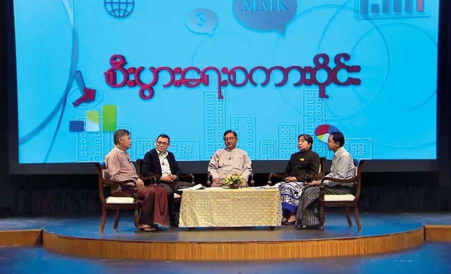 စီးပွားရေးဝန်းကျင်ကောင်းကို ဖန်တီးခြင်းစကားဝိုင်းကို မြန်မာ့အသံနှင့် ရုပ်မြင်သံကြားမှ ရိုက်ကူးထုတ်လွှင့်ခဲ့သည်။ အဆိုပါ စကားဝိုင်း ဆွေးနွေးပွဲတွင် မြန်မာ့အသံနှင့် ရုပ်မြင်သံကြားမှ ဦးသူရိန်လွင်က အစီအစဉ်မှူးအဖြစ်ဆောင်ရွက်ပြီး စီးပွားရေးနှင့် ကူးသန်းရောင်းဝယ်ရေးဝန်ကြီးဌာန အမြဲတမ်းအတွင်းဝန်၊ မြန်မာကုန်သွယ်မှုမြှင့်တင်ရေးအဖွဲ့ ညွှန်ကြားရေးမှူးချုပ် ဦးအောင်စိုး (စီးပွားရေးလုပ်ငန်းလုပ်ကိုင်ရလွယ်ကူမှုအထောက်အကူပြုအဖွဲ့၊ အတွင်းရေးမှူး)၊ စိုက်ပျိုးရေး၊ မွေးမြူရေးနှင့် ဆည်မြောင်း ဝန်ကြီးဌာန လယ်ယာမြေ စီမံခန့်ခွဲရေးနှင့် စာရင်းအင်းဦးစီးဌာန ညွှန်ကြားရေးမှူး ဦးကျော်ငြိမ်းအောင် (ပိုင်ဆိုင်မှုမှတ်ပုံတင်ခြင်း