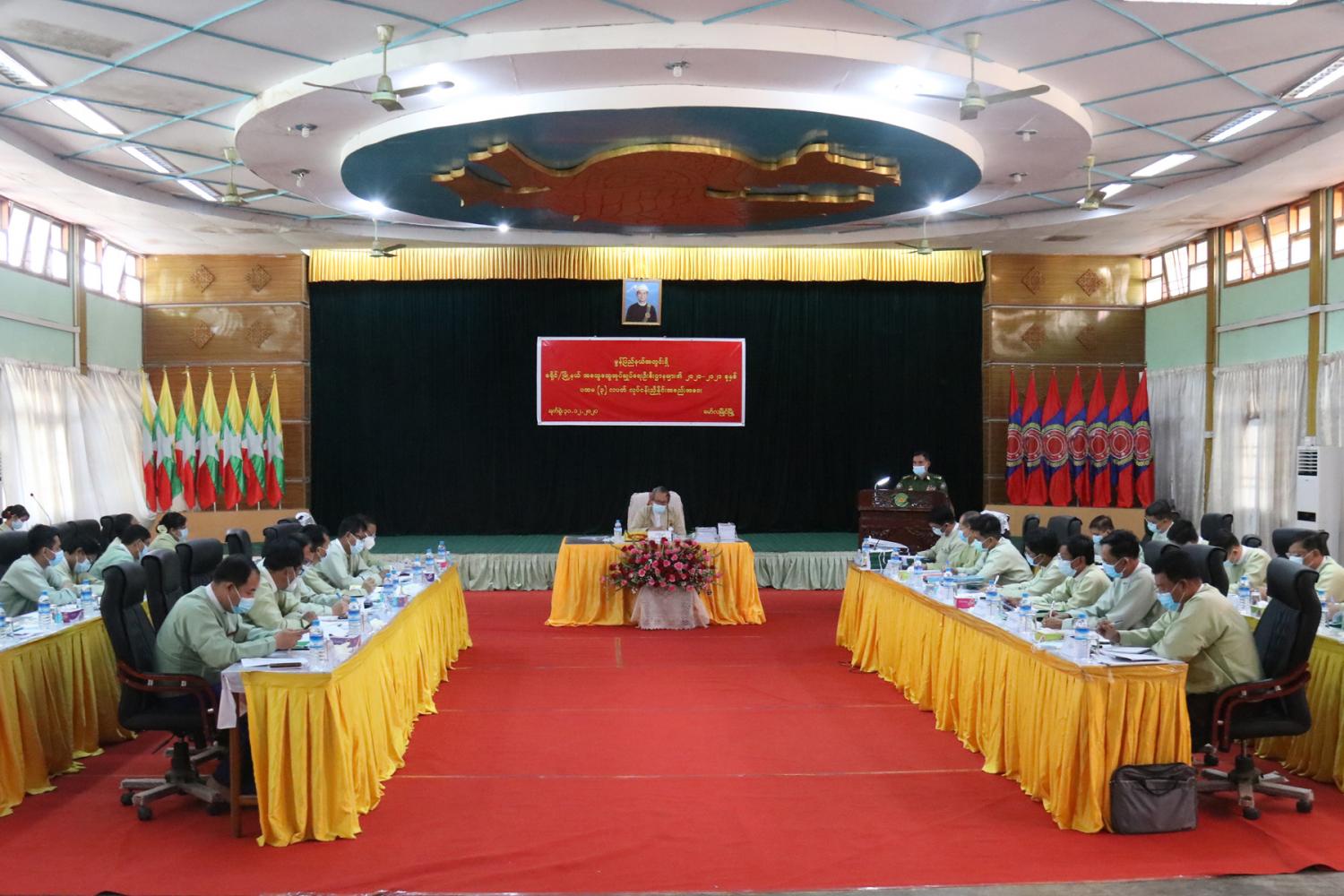 မွန်ပြည်နယ် မော်လမြိုင်မြို့ ပြည်နယ်အစိုးရအဖွဲ့ရုံး ဟင်္သာခန်းမတွင် ခရိုင်/မြို့နယ် အထွေထွေ အုပ်ချုပ်ရေး ဦးစီးဌာနများ၏ ၂၀၂၀-၂၀၂၁ ခုနှစ် ပထမ(၃)လပတ်လုပ်ငန်းညှိနှိုင်း အစည်းအဝေးကို ယနေ့ နံနက်ပိုင်းက ကျင်းပရာ မွန်ပြည်နယ်ဝန်ကြီးချုပ် ဒေါက်တာအေးဇံ တက်ရောက် အမှာစကားပြော ကြားသည်။