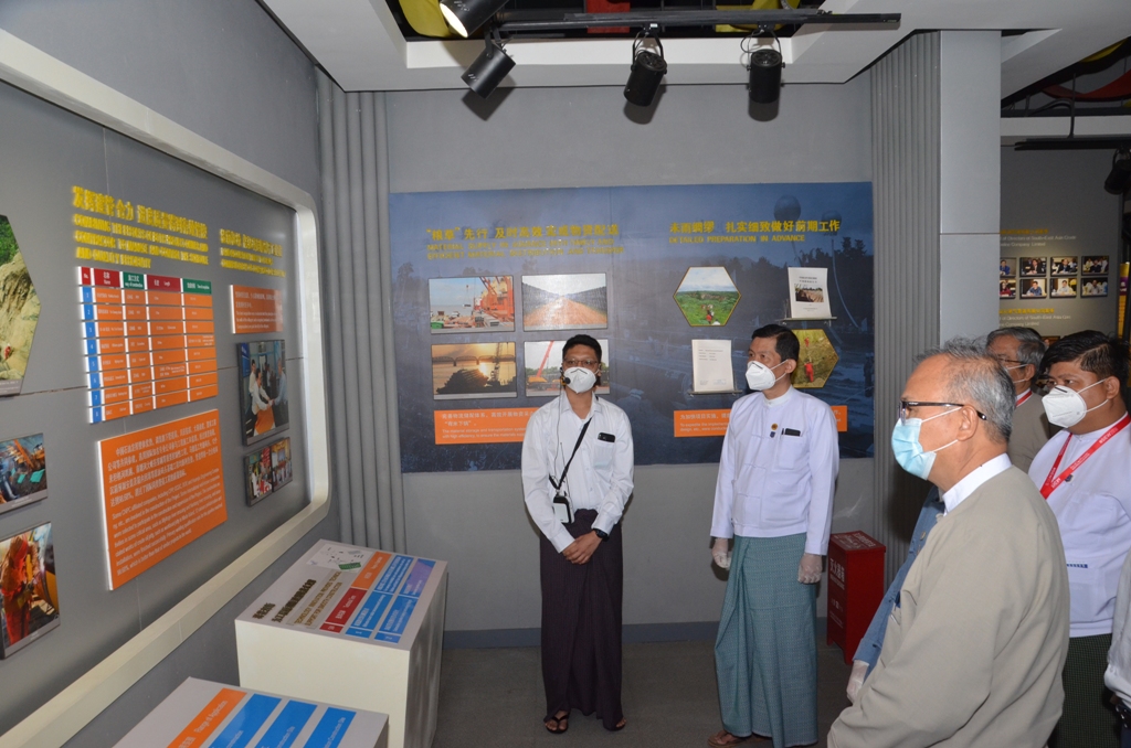 ထို့နောက် ဒုတိယဝန်ကြီးနှင့်အဖွဲ့သည် အရှေ့တောင်အာရှရေနံနှင့်သဘာဝဓာတ်ငွေ့ ပိုက်လိုင်း ကွပ်ကဲရေးရုံးဝင်းအတွင်းရှိ စီမံကိန်းဆိုင်ရာပြခန်းအား လှည့်လည်ကြည့်ရှု စစ်ဆေး ခဲ့ရာ တာဝန်ရှိသူများမှ လိုက်လံရှင်းလင်းပြသခဲ့ကြောင်း သိရသည်။
