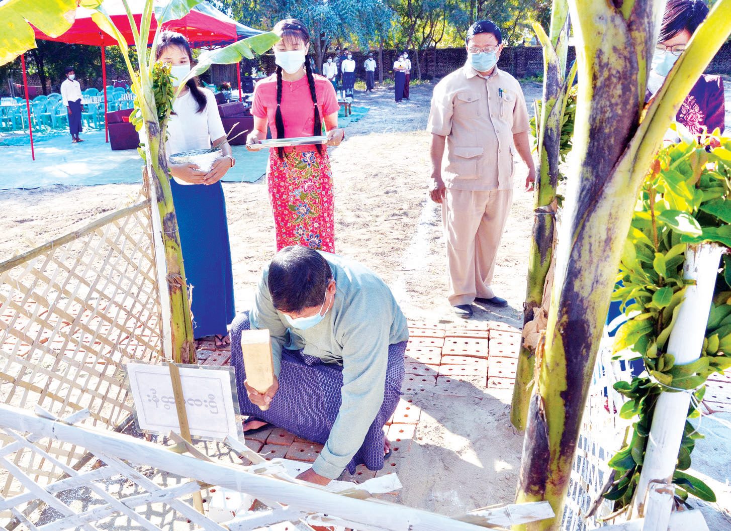 ပြည်ထောင်စုနယ်မြေ နေပြည်တော် ဇမ္ဗူသီရိမြို့နယ် ရွှေကြာပင် အားကစားကွင်း၊ အားကစားနှင့် ကာယပညာဦးစီးဌာန နှစ်ထပ်ရုံး၊ အား/ကာမှူး နေအိမ်တစ်ထပ်နှင့် RC ခြံစည်းရိုးတည်ဆောက်ခြင်းလုပ်ငန်း ပန္နက်တင်မင်္ဂလာ အခမ်းအနားကို ယနေ့ နံနက် ၈ နာရီက ဇမ္ဗူသီရိ မြို့နယ် (ရွှေကြာပင်အားကစားကွင်း) မြေနေရာ၌ ကျင်းပသည်။