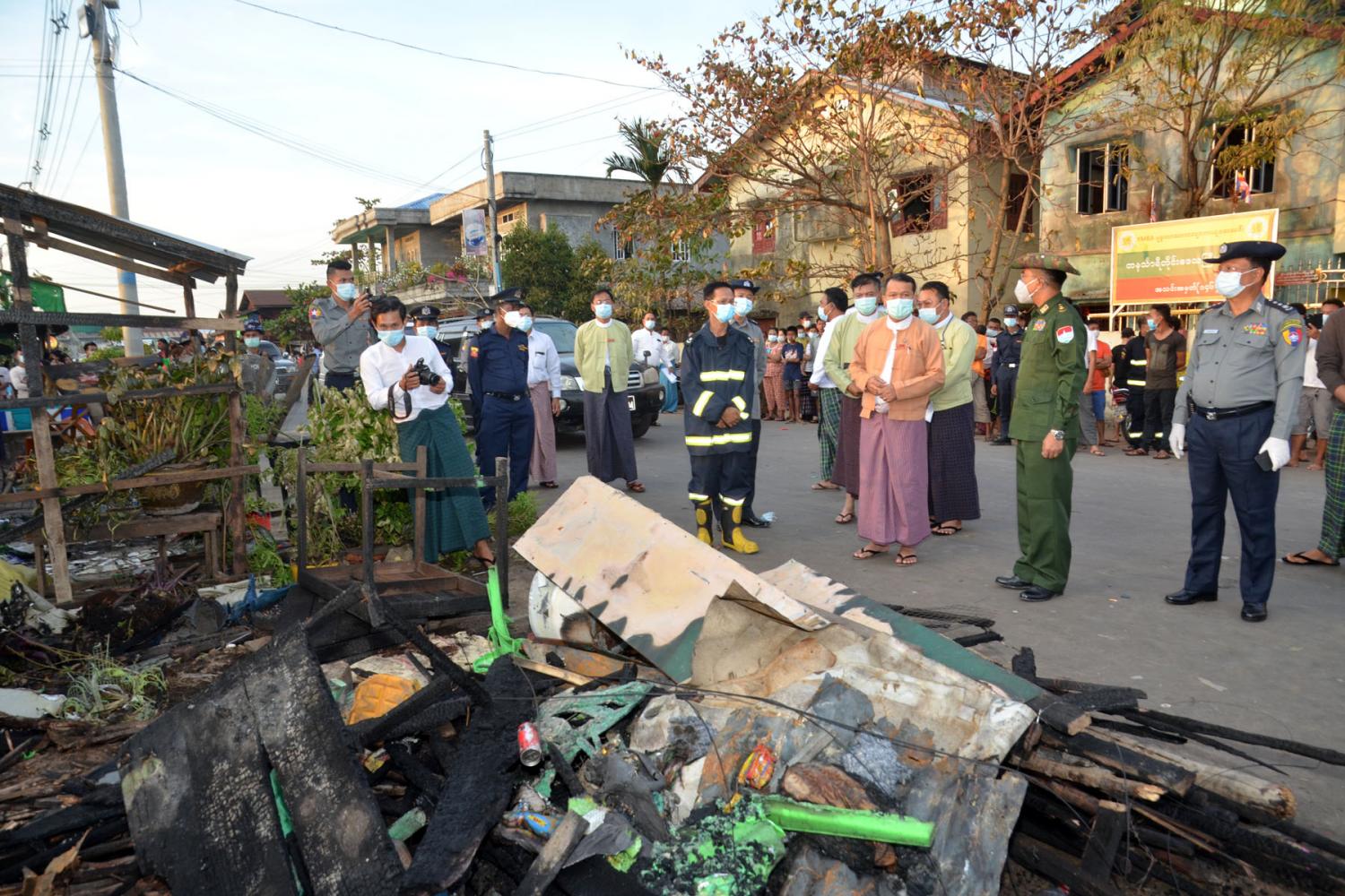 ရှေးဦးစွာ ဝန်ကြီးချုပ်နှင့် အဖွဲ့သည် မီးလောင်ကျွမ်းခဲ့သည့် နေအိမ်များအား သွားရောက်ကြည့်ရှုခဲ့ကြပြီး မီးဘေးသင့်ပြည်သူ များအား ယာယီကယ်ဆယ်ရေးစခန်းဖွင့်လှစ်ထားရှိသည့် အောင်မင်္ဂလာပရိယတ္တိစာသင်တိုက် တွင် သွားရောက်တွေ့ဆုံခဲ့ရာ အောင်မင်္ဂလာ ပရိယတ္တိစာသင်တိုက် ဆရာတော်ထံမှ ဩဝါဒစကားနာယူခဲ့ကြ၍ ဝန်ကြီးချုပ်မှ ဆရာတော်အား လှူဖွယ်ပစ္စည်းများ လှူဒါန်းသည်။ ထိုနောက် ဝန်ကြီးချုပ် နှင့် တာဝန်ရှိသူများက မီးဘေးသင့်အိမ်ထောင်စုများအား ထောက်ပံ့ငွေများနှင့် ကယ်ဆယ်ရေး ပစ္စည်းများ ထောက်ပံ့ပေးအပ်ခဲ့ကြပြီး ဝန်ကြီးချုပ် မှ မီးဘေးသင့်ပြည်သူများအား အားပေးစကားပြောကြားခဲ့သည်။