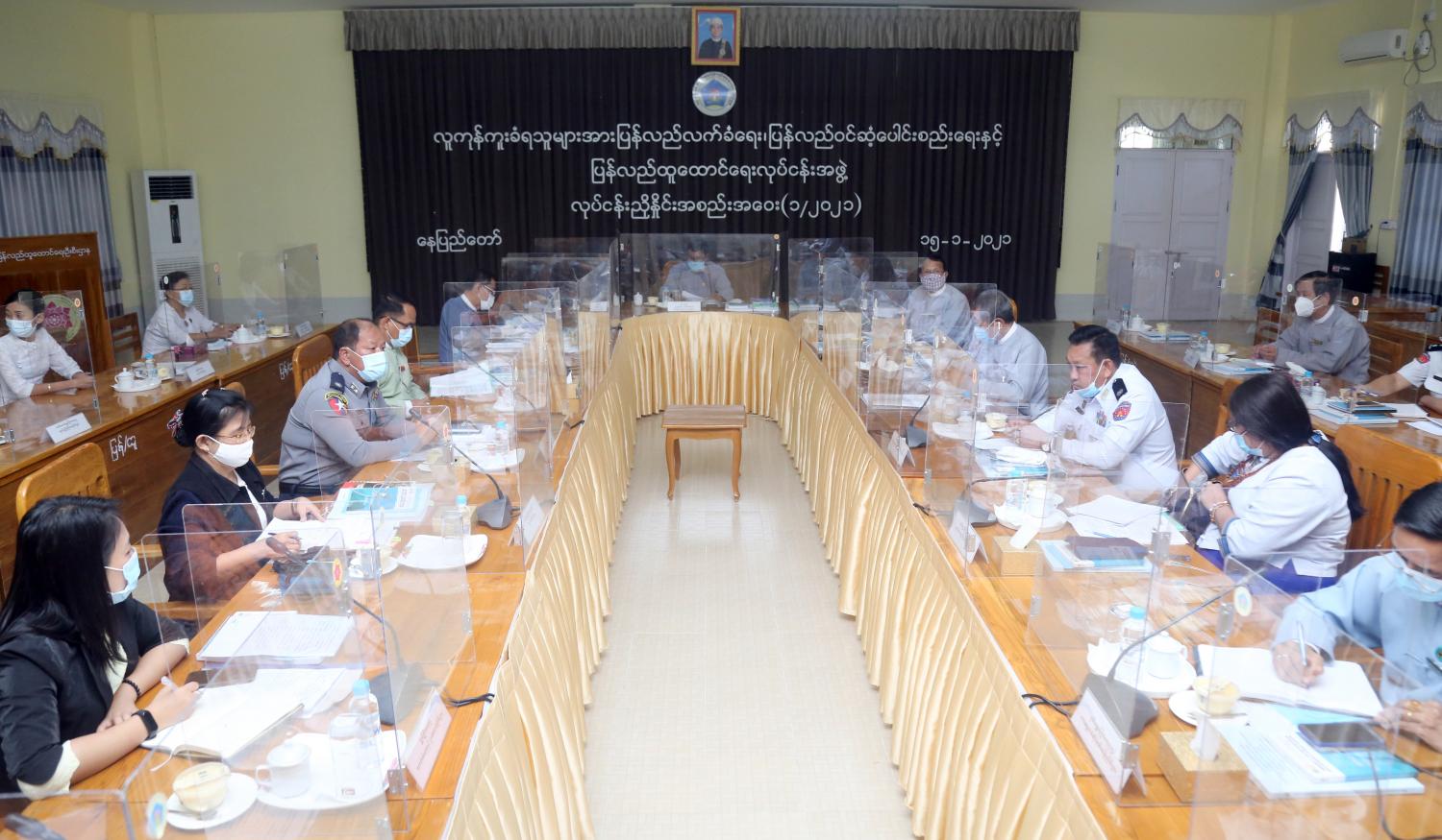 အစည်းအဝေးသို့ လူမှုဝန်ထမ်း၊ ကယ်ဆယ်ရေးနှင့် ပြန်လည်နေရာချထားရေးဝန်ကြီး ဌာန အမြဲတမ်းအတွင်းဝန်၊ ညွှန်ကြားရေးမှူးချုပ်နှင့်လုပ်ငန်း အဖွဲ့ဝင်ဌာနများဖြစ်သော ကောင်စစ်ရေးရာဦးစီးဌာန၊ အပြည်ပြည်ဆိုင်ရာ အဖွဲ့အစည်းများနှင့် စီးပွားရေး ဦးစီးဌာန၊ အထွေထွေ အုပ်ချုပ်ရေးဦးစီးဌာန၊ ပြန်ကြားရေးနှင့်ပြည်သူ့ ဆက်ဆံရေး ဦးစီးဌာန၊ အလုပ် သမားညွှန်ကြားရေး ဦးစီးဌာန၊ လူဝင်မှုကြီးကြပ်ရေးဦးစီးဌာန၊ အမျိုးသား မှတ်ပုံတင် နှင့်နိုင်ငံသားဦးစီးဌာန၊ ပညာရေး သုတေသန၊ စီမံကိန်းနှင့်လေ့ကျင့်ရေးဦးစီးဌာန၊ လူကုန် ကူးမှုတားဆီးနှိမ်နင်းရေးရဲတပ်ဖွဲ့၊ ဘေးအန္တရာယ် စီမံခန့်ခွဲမှုဦးစီးဌာနတို့မှ ဒုတိယ ညွှန်ကြားရေးမှူးချုပ်များနှင့် တာဝန်ရှိသူများ တက်ရောက်ကြသည်။